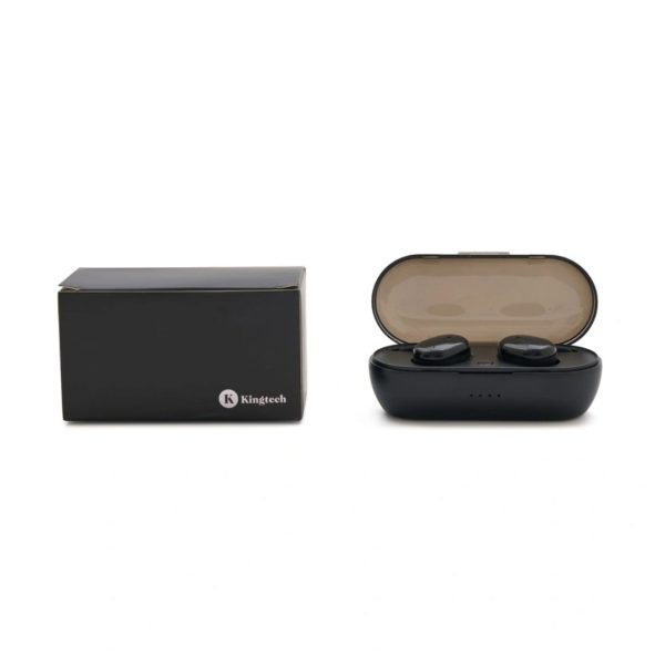 Descripción general del producto: Auriculares inalámbricos con estuche de carga y micrófono incorporado. Posee tecnología bluetooth 5.0, la capacidad del auricular es de 55mAh y su capacidad de carga es de 300mAh. Cuenta con cobertura bluetooth en una distancia de 10 metros y su duración en funcionamiento es de 3 horas seguidas. Mantiene la carga sin uso por 120 horas y el tiempo de carga es de 50 minutos. Funciones touch: un toque para pausar/reproducir música, dos toques para redial. Medidas: 8 x 3,5 cm. Kingtech.