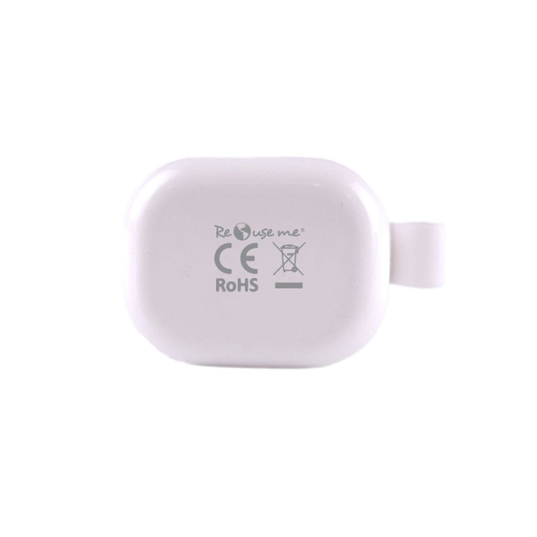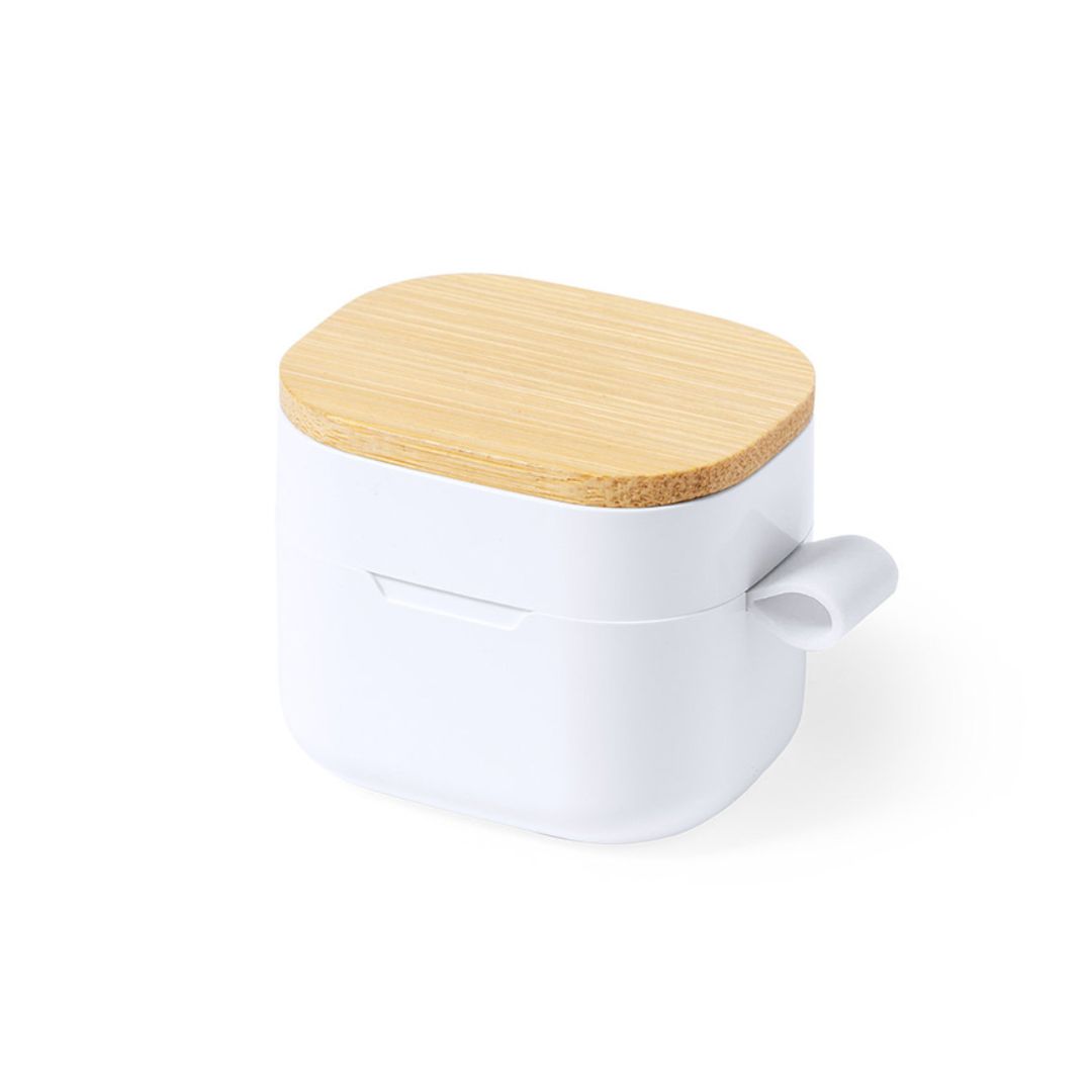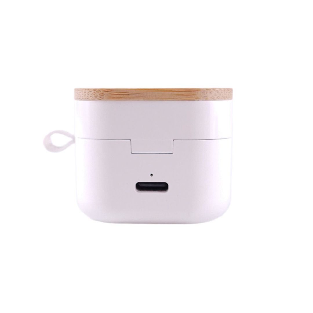 Descripción general del producto: Auriculares inalámbricos fabricados en RABS, bambú y silicona. Cada auricular cuenta con un botón touch que permite contestar y finalizar llamadas, reproducir y pausar música, cambiar a la siguiente o anterior canción. Tienen tecnología Bluetooth 5.3, una duración de batería de aproximadamente 4 horas y un estuche de carga de 300 mAh, el cual se carga a través de un cable usb c. Los auriculares cuentan con almohadillas de diferentes tamaños. Viene dentro de una caja de cartón junto a su manual de instrucciones y cable cargador. ReUseMe.