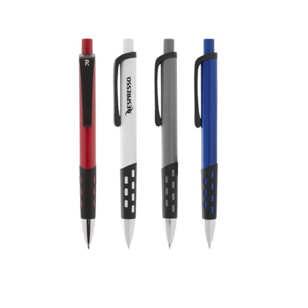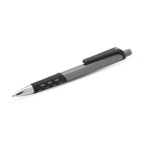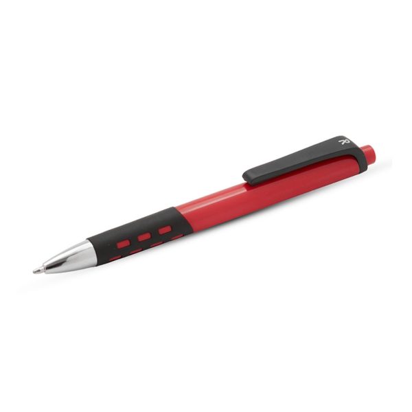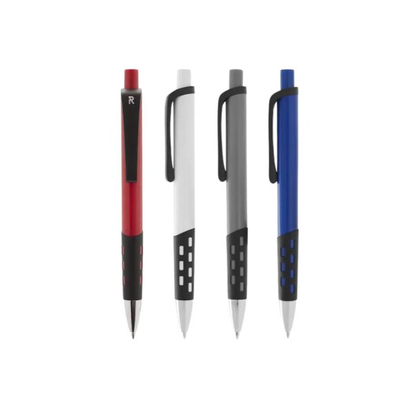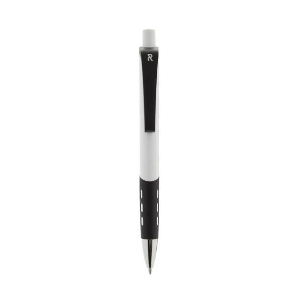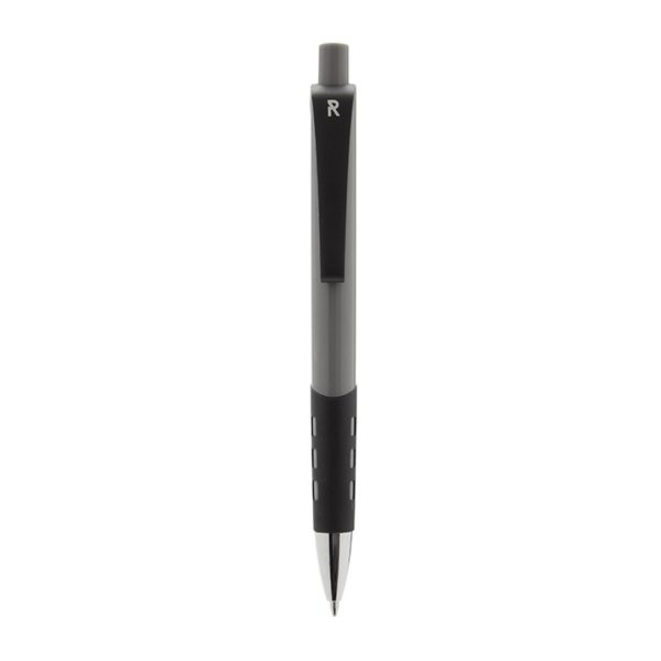 Descripción general del producto: Bolígrafo de plástico, con grip de goma y clip en color negro. Sistema de apertura con pulsador. Tinta negra. Roupen.