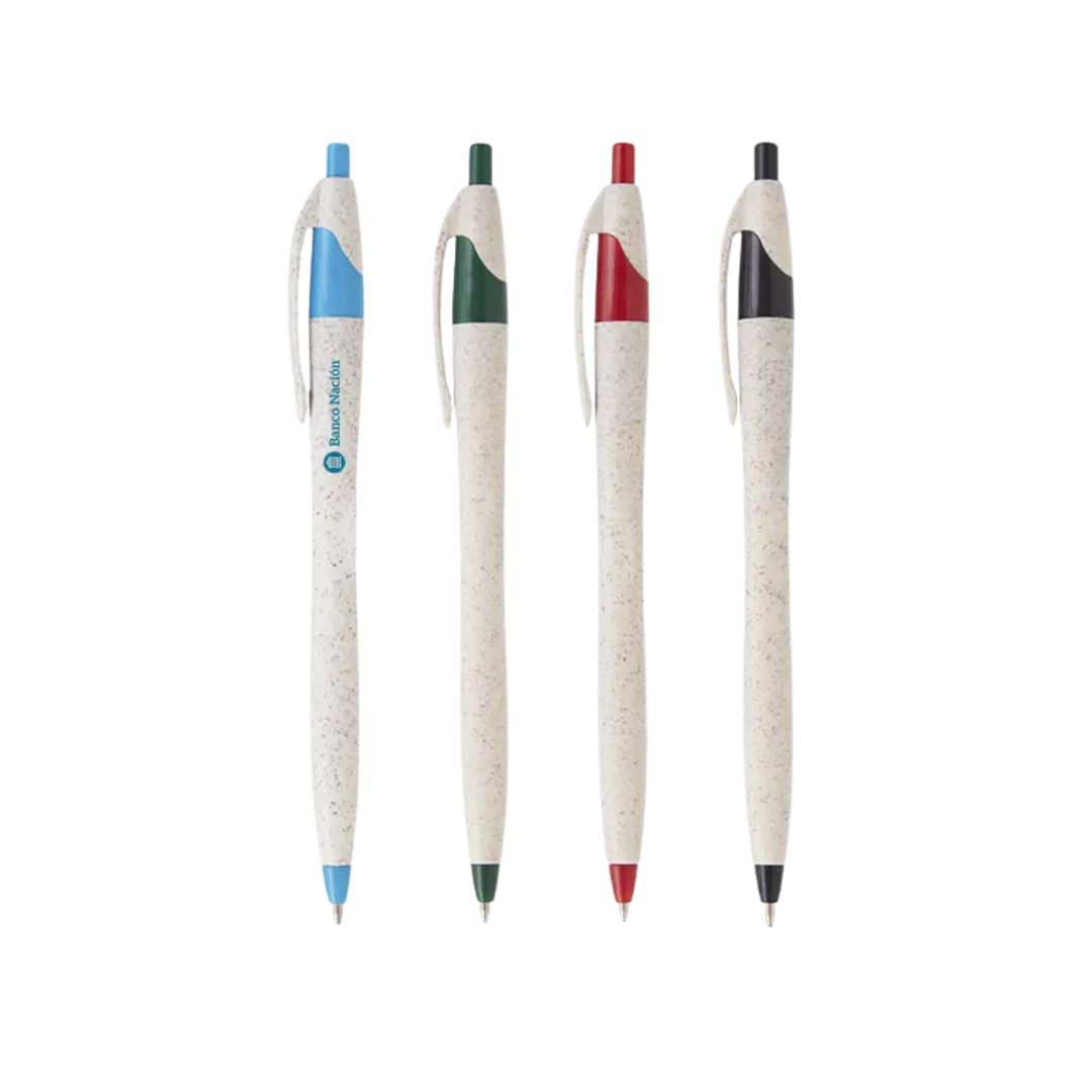 Descripción general del producto: Bolígrafo confeccionado en Wheat Straw, pasta de tallo de trigo, un material sustentable que reduce el consumo de plásticos vírgenes y ABS. Tinta de color Negro. Apertura con sistema retráctil. ReUseMe.