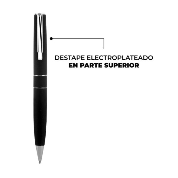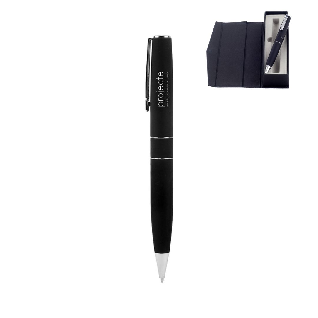 Descripción general del producto: Metal. Cuerpo metálico engomado. Clip y detalles color plata. Apertura giratoria. Tinta negra. Estuche con cierre magnético. Destape electroplateado en la parte superior. Presentación en estuche con cierre magnético.