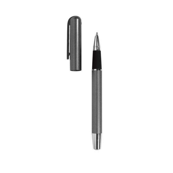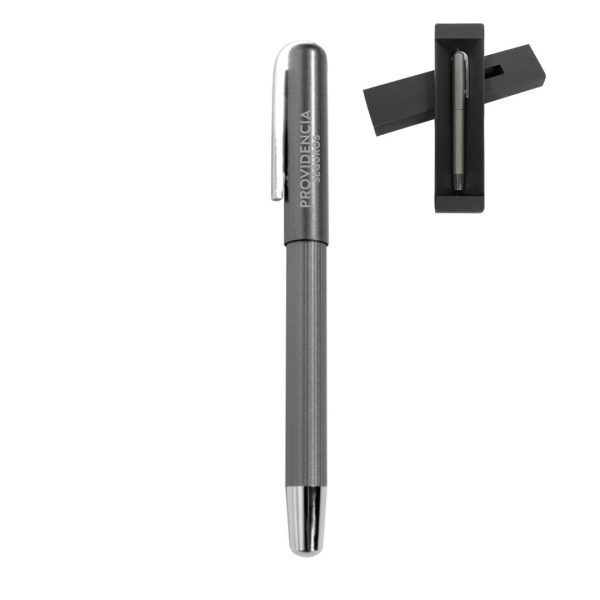 Descripción general del producto: Metal. Cuerpo color plata con detalles, capuchon con clip plata brillante. Tinta gel color negra. Decape color plata. Presentación en caja de regalo.