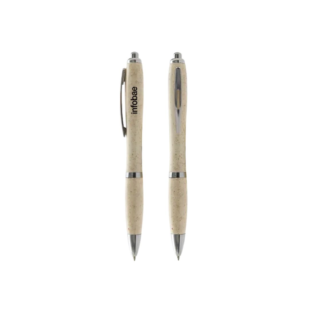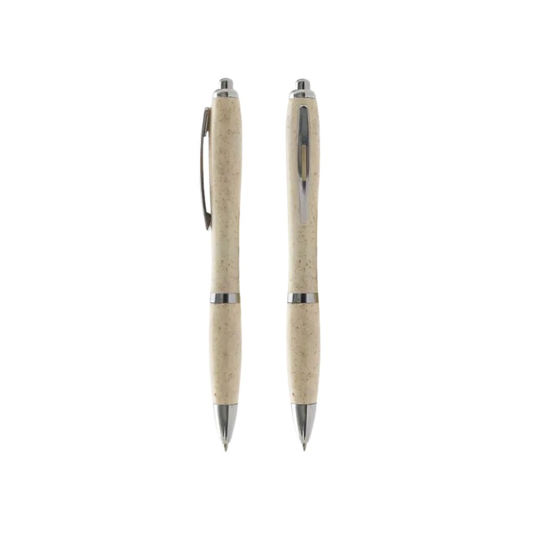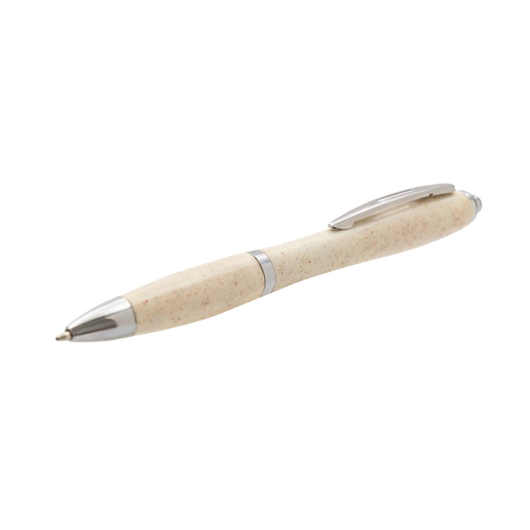 Descripción general del producto: Bolígrafo de materiales sustentables de color beige. Hecho a base de WheatStraw, pasta de tallo de trigo, un material sustentable que reduce el consumo de plásticos vírgenes. Ideal para tener a mano y estar siempre preparado para anotar, escribir, firmar, etc. Tahg.