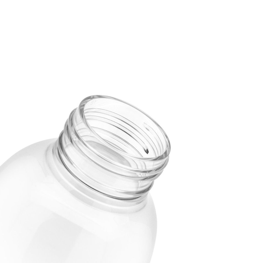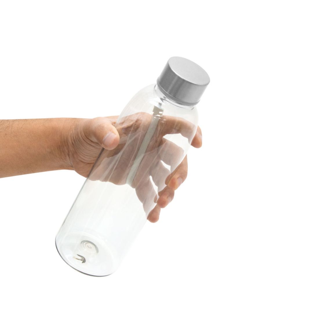 Descripción del producto: 7 x 23 cm. Capacidad 700 ml. Peso de la botella 70 g y de la tapa 15g. Material PET Cristalino. Botella de plástico transparente con tapa a rosca de acero inoxidable, anillo de silicona antiderrame y correa para transportar.