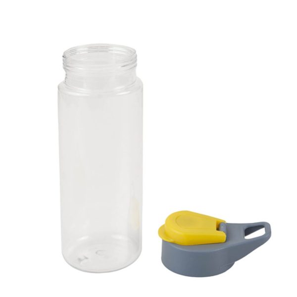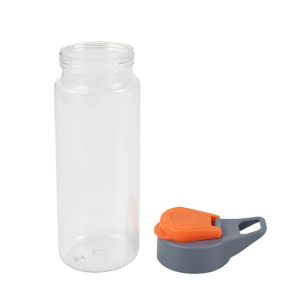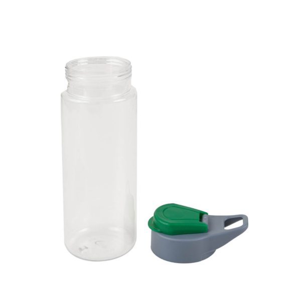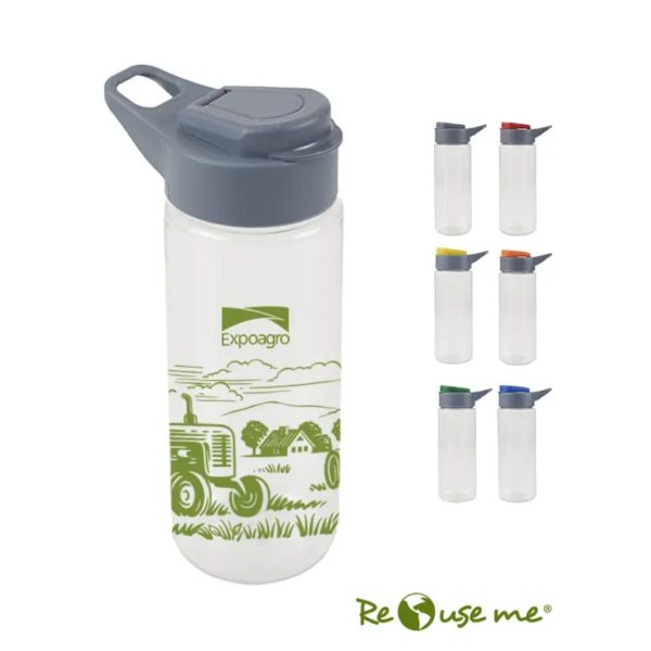 Descripción general del producto: Botella transparente reutilizable de PET con tapa de Polipropileno. Cuenta con un agarre en la tapa para su transporte. No es apta para bebidas calientes. Capacidad: 600ml. No es apto para lavavajillas. No es apto para microondas. ReUseMe.
