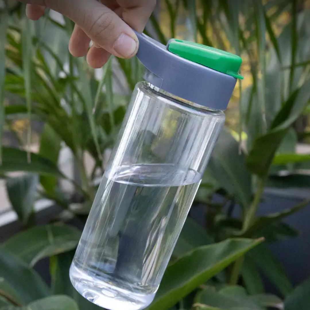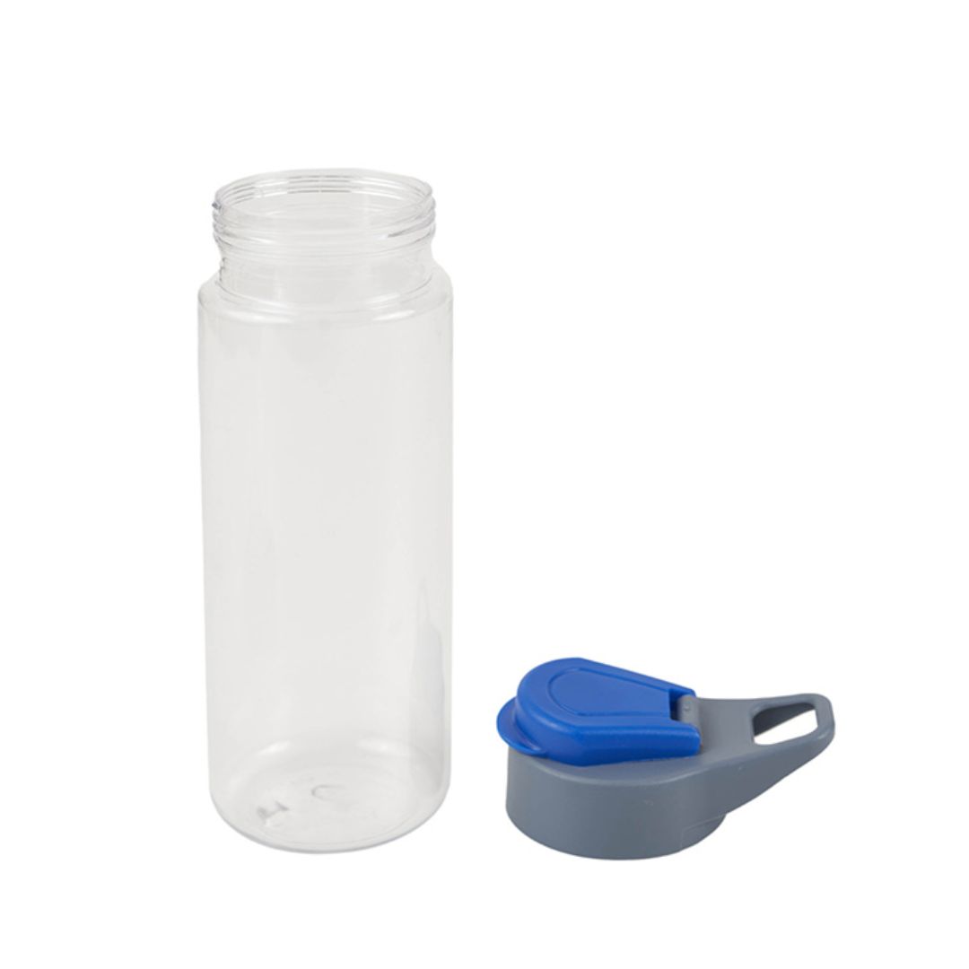 Descripción general del producto: Botella transparente reutilizable de PET con tapa de Polipropileno. Cuenta con un agarre en la tapa para su transporte. No es apta para bebidas calientes. Capacidad: 600ml. No es apto para lavavajillas. No es apto para microondas. ReUseMe.