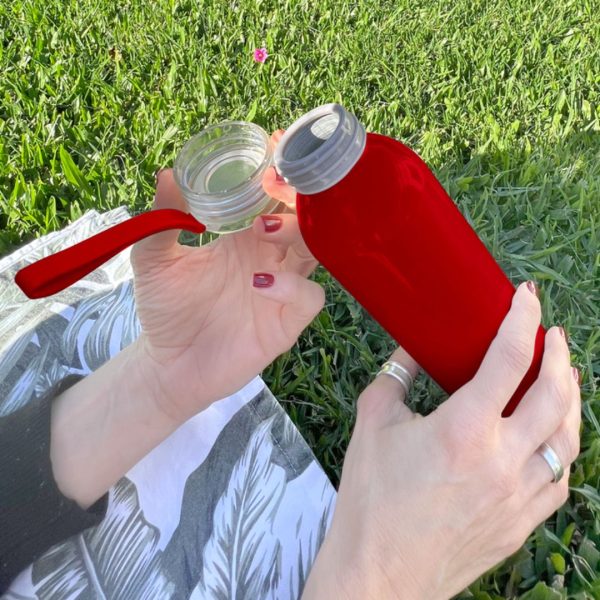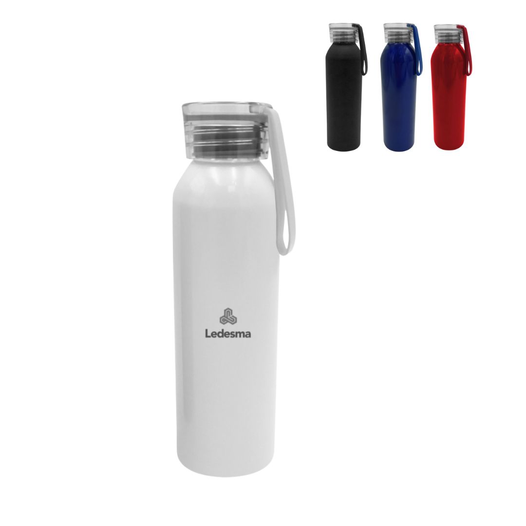 Descripción del producto: 6,6 x 23,2 cm. Capacidad 600 ml. Aluminio. Botella de aluminio con cuerpo color. Tapa transparente con tira de silicona (de 8 cm) del mismo color que el cuerpo de la botella. Cuerpo de botella recubierto con pintura especial para facilitar la impresión del producto. Presentación en caja de regalo Kraft.