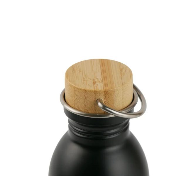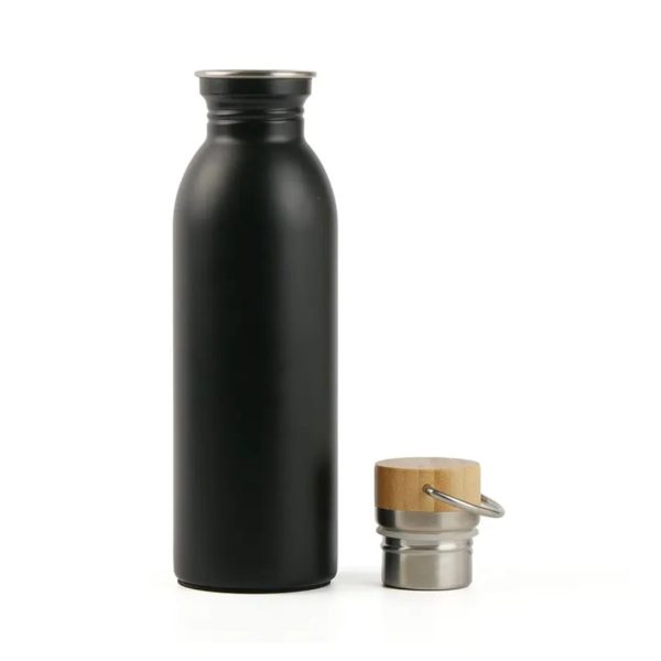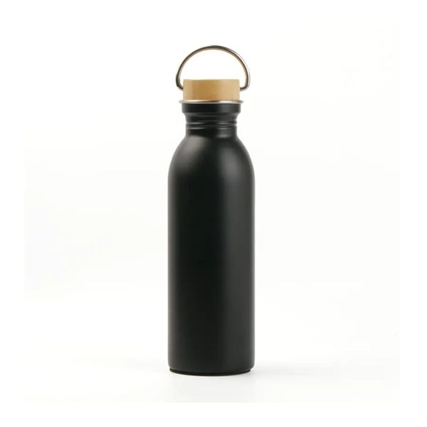 Descripción general del producto: Botella de acero inoxidable con simple pared y tapa de bamboo. Cuenta con una manija de agarre sobre su tapa para fácil transporte y tiene una capacidad de 600ml. Ideal para actividades deportivas. Re use me.