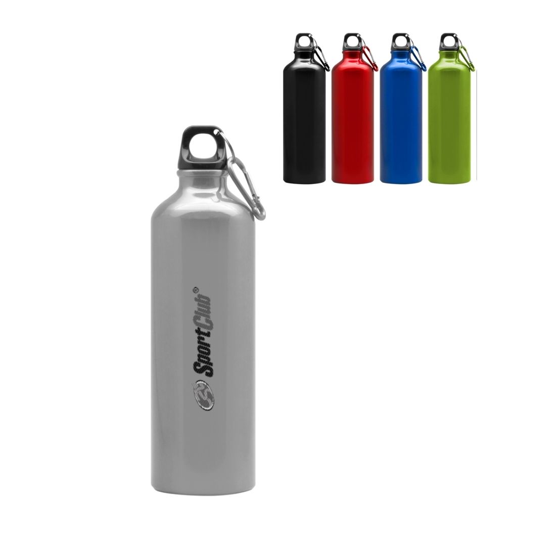 Descripción del producto: 7,2 x 25,5 cm. Capacidad 750 ml. Aluminio. Botella de aluminio. Tapa a rosca plástica y gancho metálico.