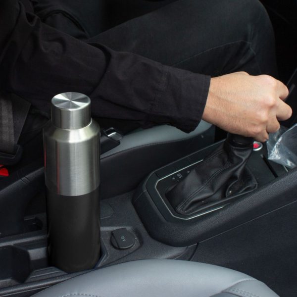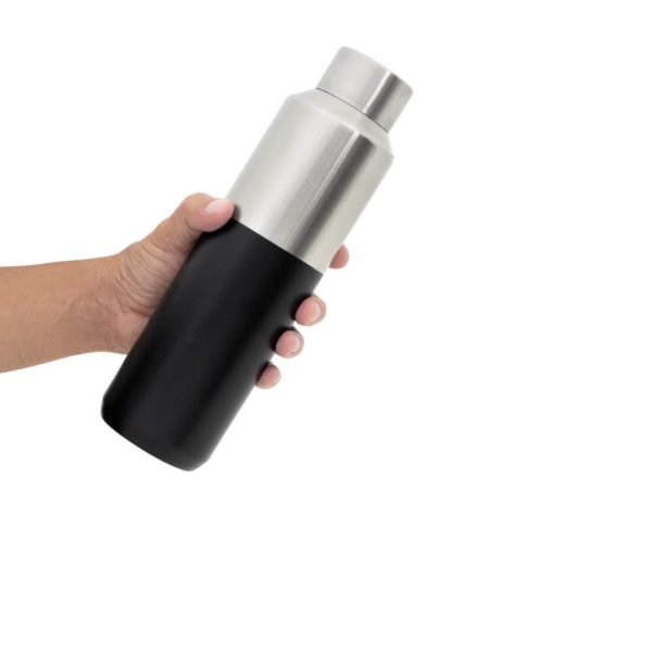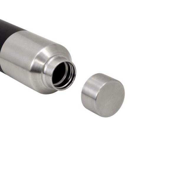 Descripción del producto: Botella doble pared, sellada al vacío. Interior de acero 304 y exterior de acero 201. Tapa a rosca de acero 201 con anillo de silicona. Pintura acabado mate en parte inferior. Mantiene por más de 12 hs la temperatura de las bebidas calientes y 24 hs de las bebidas frías. Medidas: 7 cm x 24,5 cm. Capacidad: 600 ml. Materiales: Acero inoxidable. Presentación: en caja de regalo kraft.