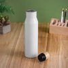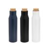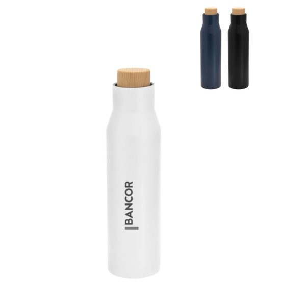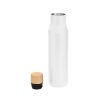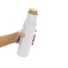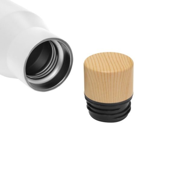 Descripción del producto: Botella doble pared, sellada al vacío. Interior de acero 304 y exterior de acero 201. Pintura acabado mate. Tapa a rosca con anillo de silicona, interior de acero 201 y exterior en polipropileno imitación bambú. Mantiene por más de 12 hs la temperatura de las bebidas calientes y 24 hs de las bebidas frías.