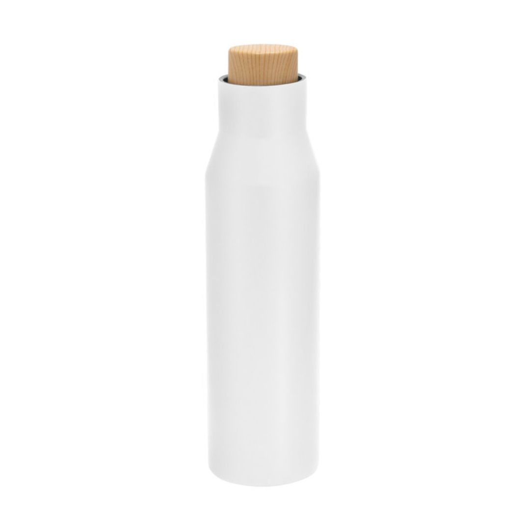 Descripción del producto: Botella doble pared, sellada al vacío. Interior de acero 304 y exterior de acero 201. Pintura acabado mate. Tapa a rosca con anillo de silicona, interior de acero 201 y exterior en polipropileno imitación bambú. Mantiene por más de 12 hs la temperatura de las bebidas calientes y 24 hs de las bebidas frías.