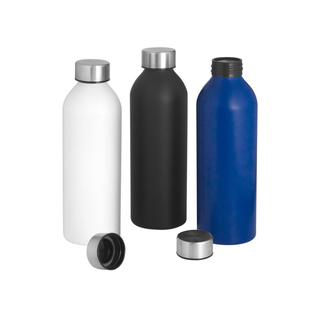 Descripción del producto: Botella de aluminio con acabado mate. Tapa a rosca color plata en acero inoxidable 201 y anillo de silicona antiderrame.