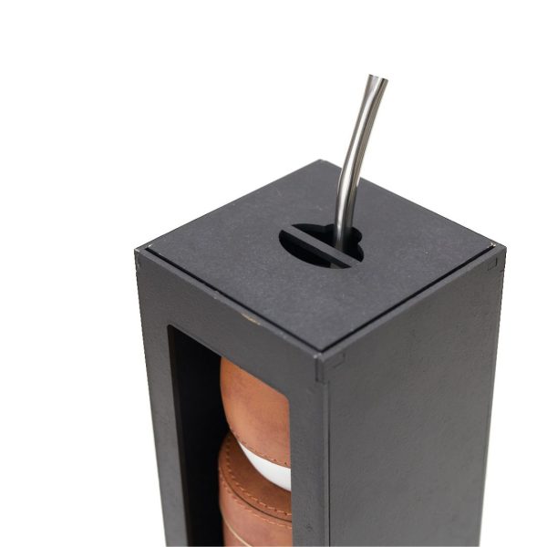 - Lata para yerba de 12 cm. Lata y tapa forradas en ecocuero. Costura reforzada.
