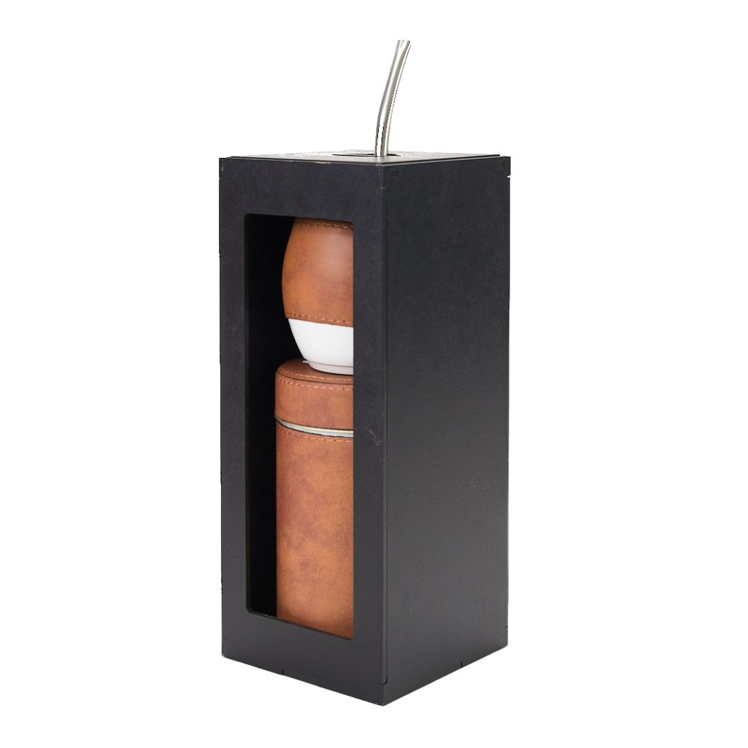 - Lata para yerba de 12 cm. Lata y tapa forradas en ecocuero. Costura reforzada.