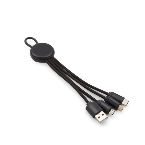 Descripción general del producto: Cable 3 en 1 color negro, blanco o gris, con una longitud de 17 cm. Incluye un cable de entrada USB A y 3 de salida TIPO C / LIGHTING / MICRO B, lo que te permite cargar dispositivos con diferentes tipos de entradas. Es el accesorio perfecto para mantener tus dispositivos siempre cargados y listos para usar. Realizado en plástico reciclados: RABS y RTPE. ReUseMe.
