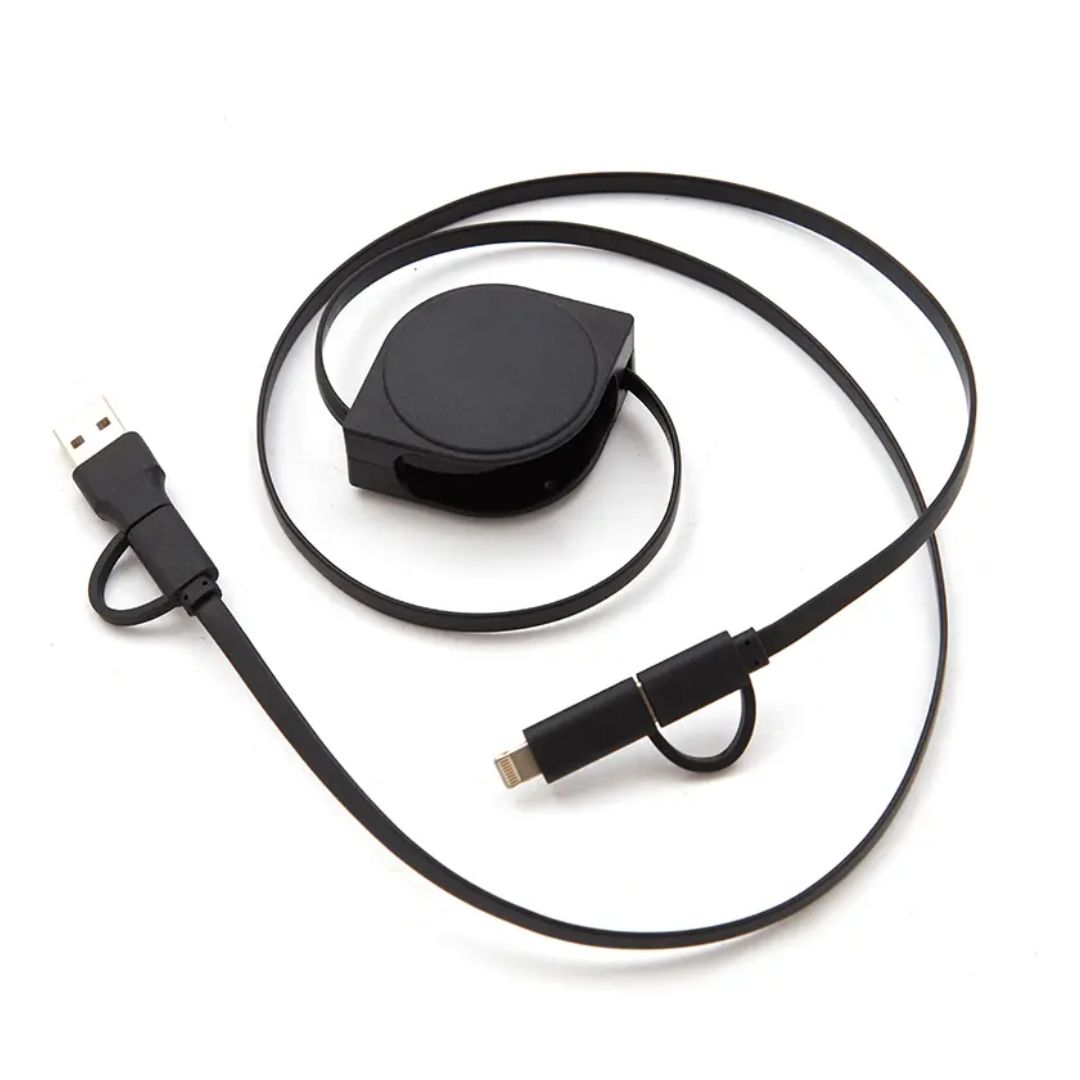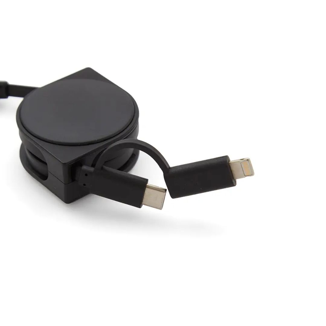 Descripción general del producto: Cable 4 en 1 extensible, color negro con una longitud de 100cm. Es el accesorio perfecto para mantener tus dispositivos siempre cargados y listos para usar. Interfaz de entrada USB A / USB C. Interfaz de salida USB C / MICRO / LIGHTNING, lo que te permite cargar dispositivos con diferentes tipos de entradas. Cuenta con cargador para Apple Watch. Tahg.