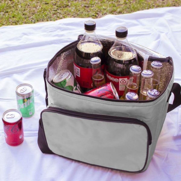 28 x 25 x 25 cm. Capacidad 17,5 litros. Poliéster 420D. Interior recubierto de aluminio. Exterior con bolsillo y cierre que permite guardar pequeños objetos. Tira con regulador de tamaño para poderla transportar cómodamente.