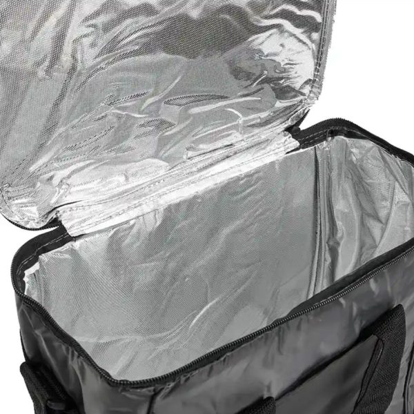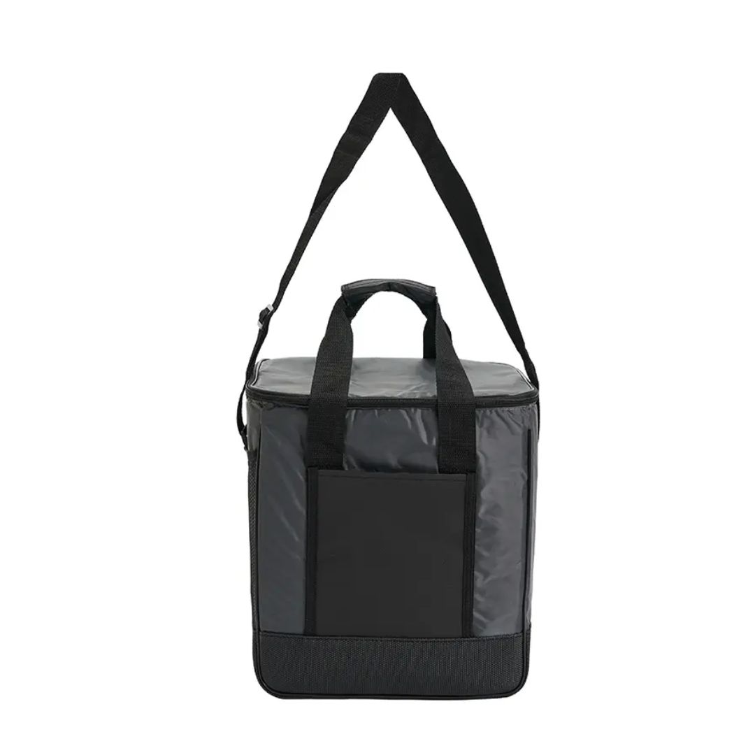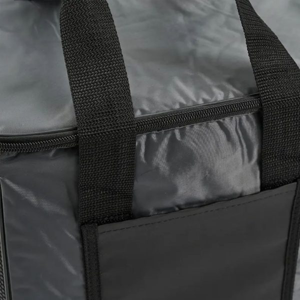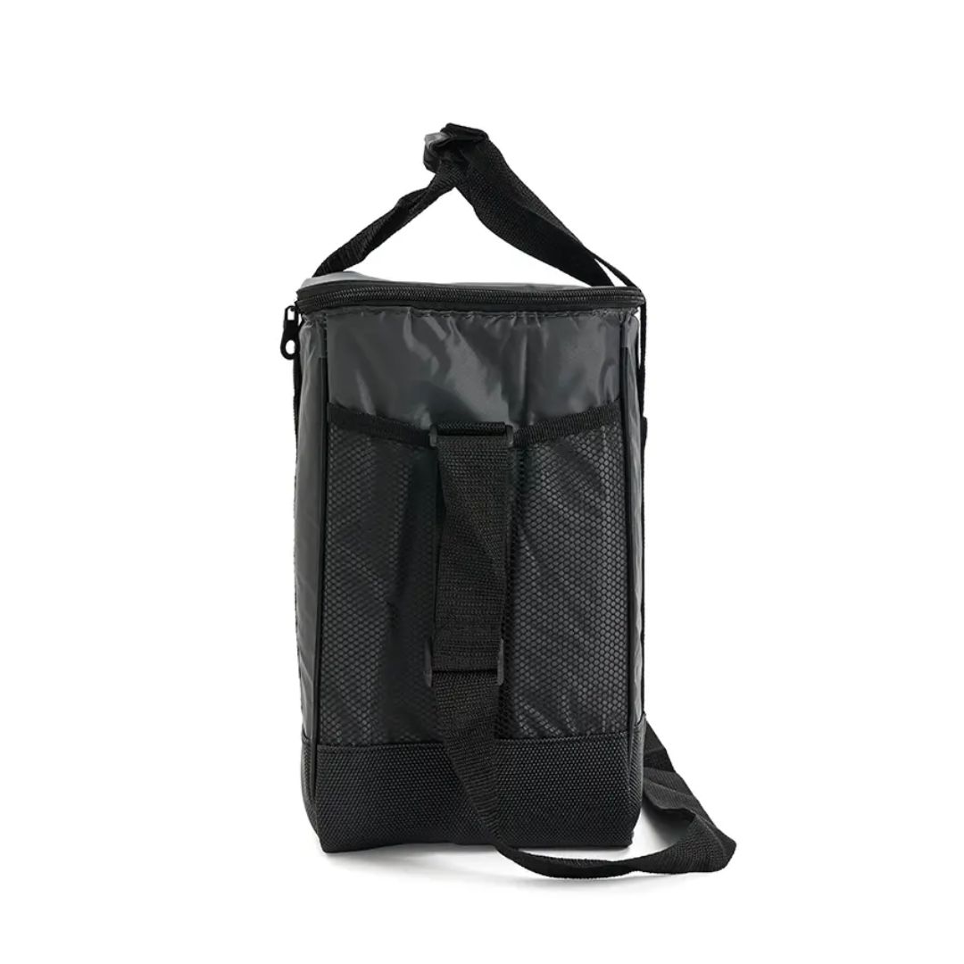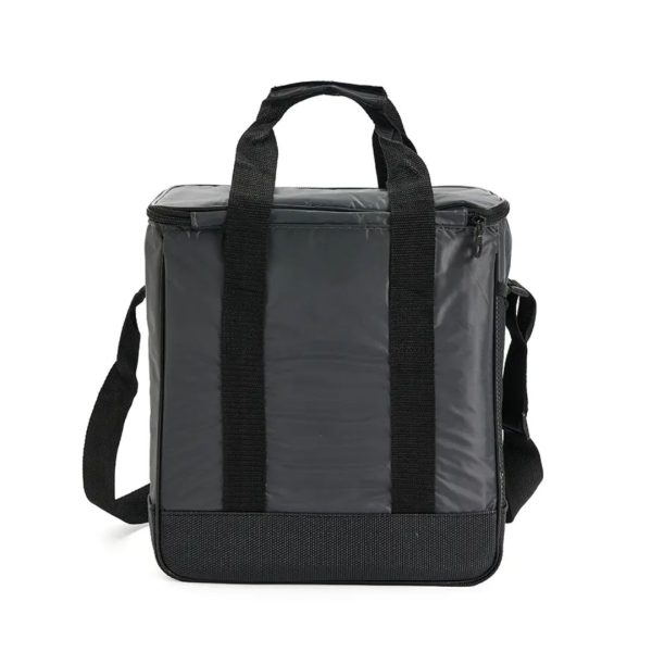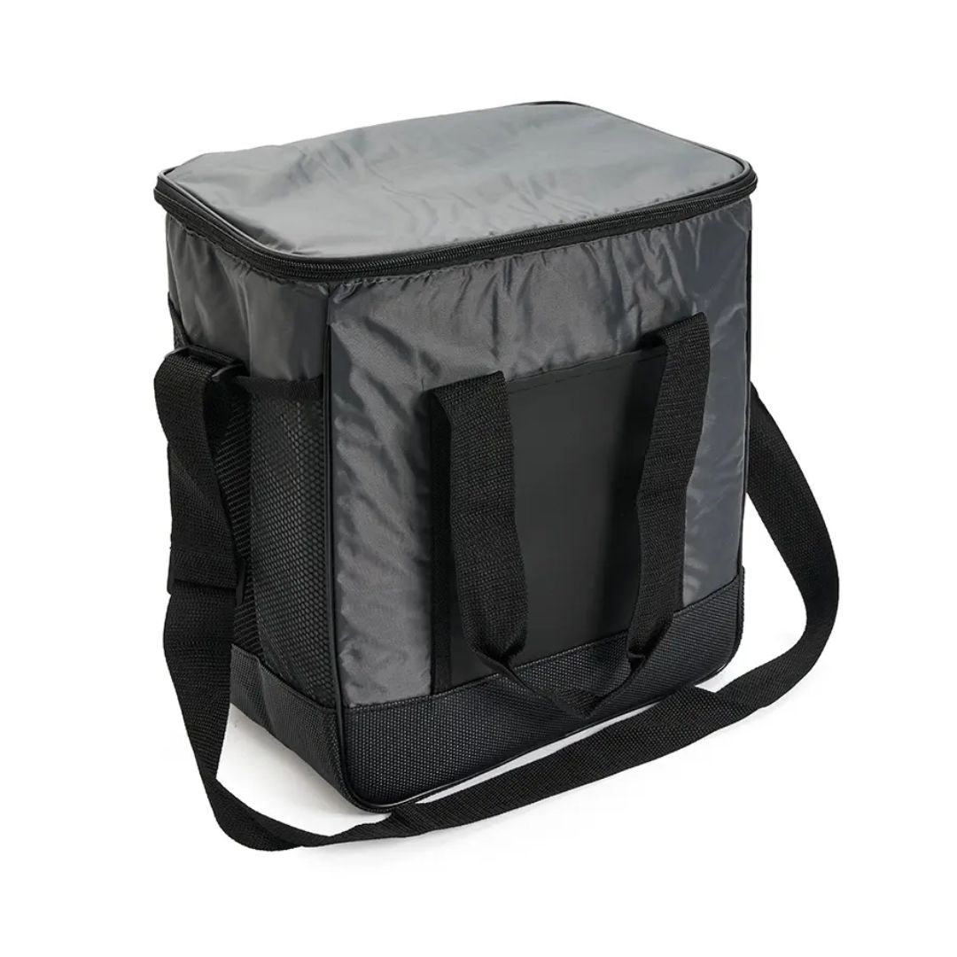 Descripción del producto: Cooler con doble asa y correa regulable. Está confeccionado en tela 70D, con interior de aluminio y espuma PE. Cuenta con compartimiento principal con cierre, bolsillo frontal y dos asas superiores reforzadas. Es ideal para conservar alimentos y bebidas en salidas o traslados.