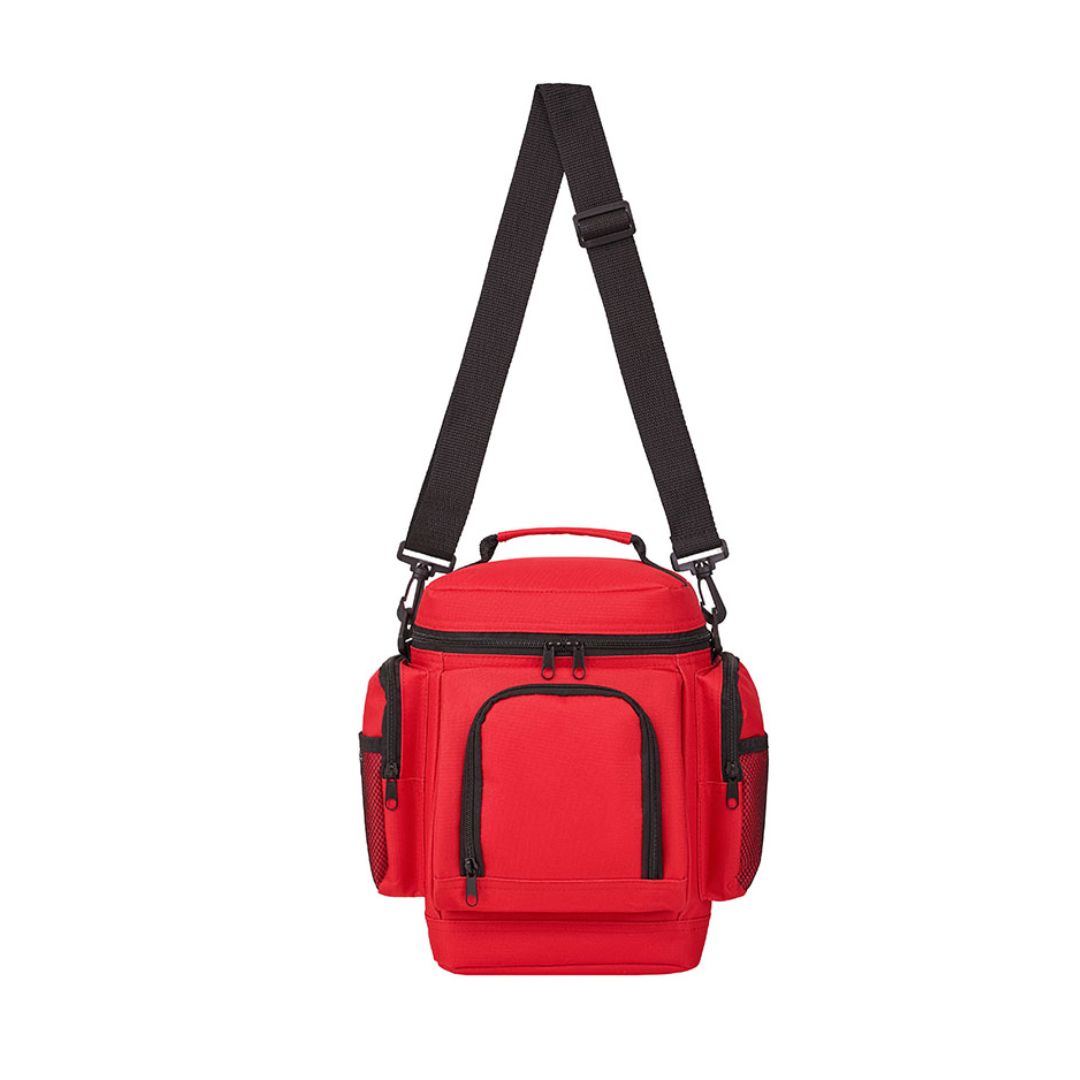 Descripción del producto: Cooler tipo morral, confeccionado en tela Nylon 600D. Tiene interior térmico forrado en aluminio. Cuenta con un compartimiento principal, 3 bolsillos con cierre. Capacidad: 7 Lts. Tahg.