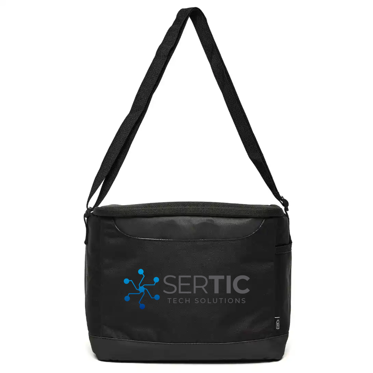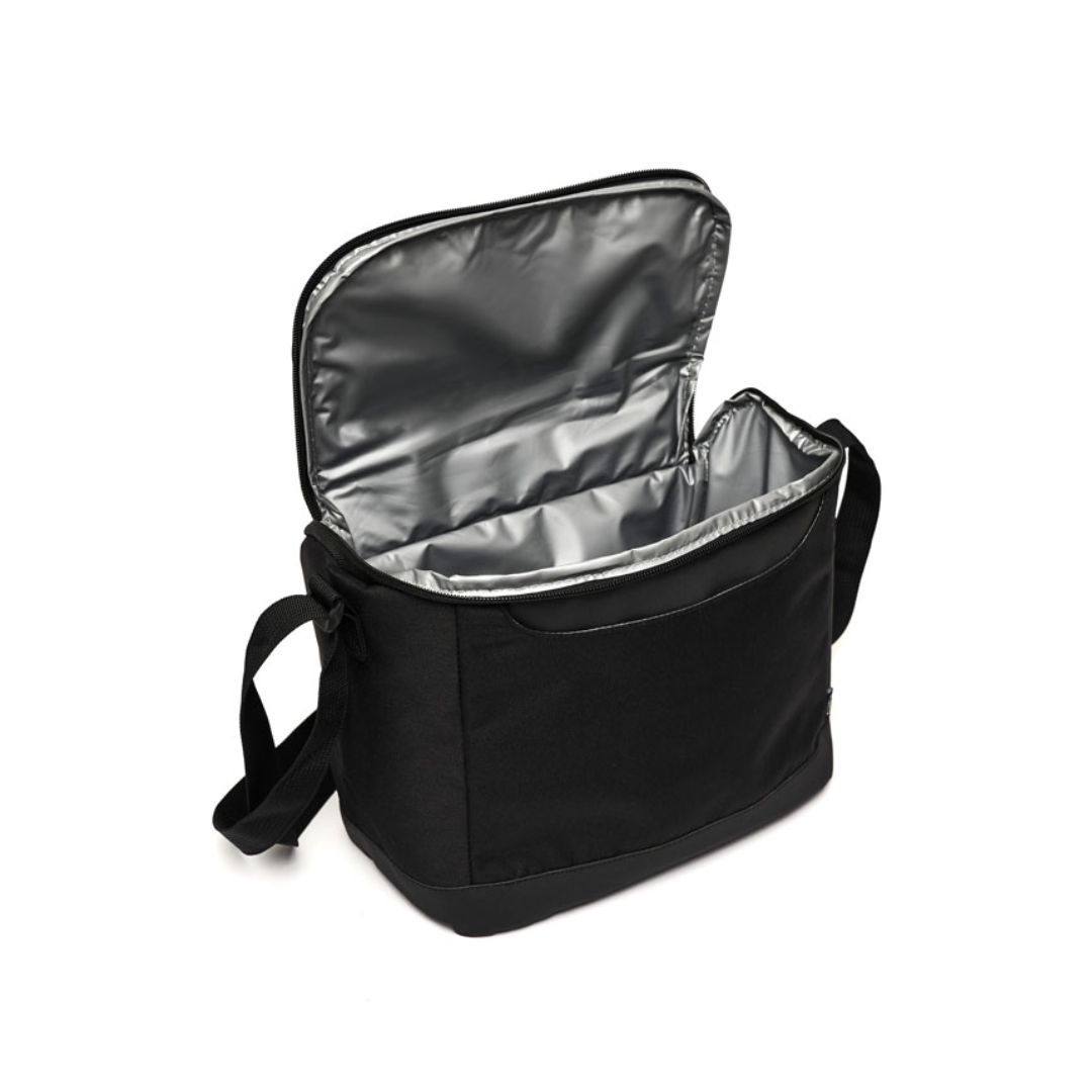 Descripción del producto: Cooler confeccionado en poliuretano, poliéster con revestimiento de PVC, espuma de polietileno 3mm utilizada como aislante y PEVA Lining, un revestimiento de polietileno vinil acetato, conocido por ser impermeable y usado en recubrimientos. Cuenta con interior térmico. Capacidad: 7 Lts. ReUseMe.