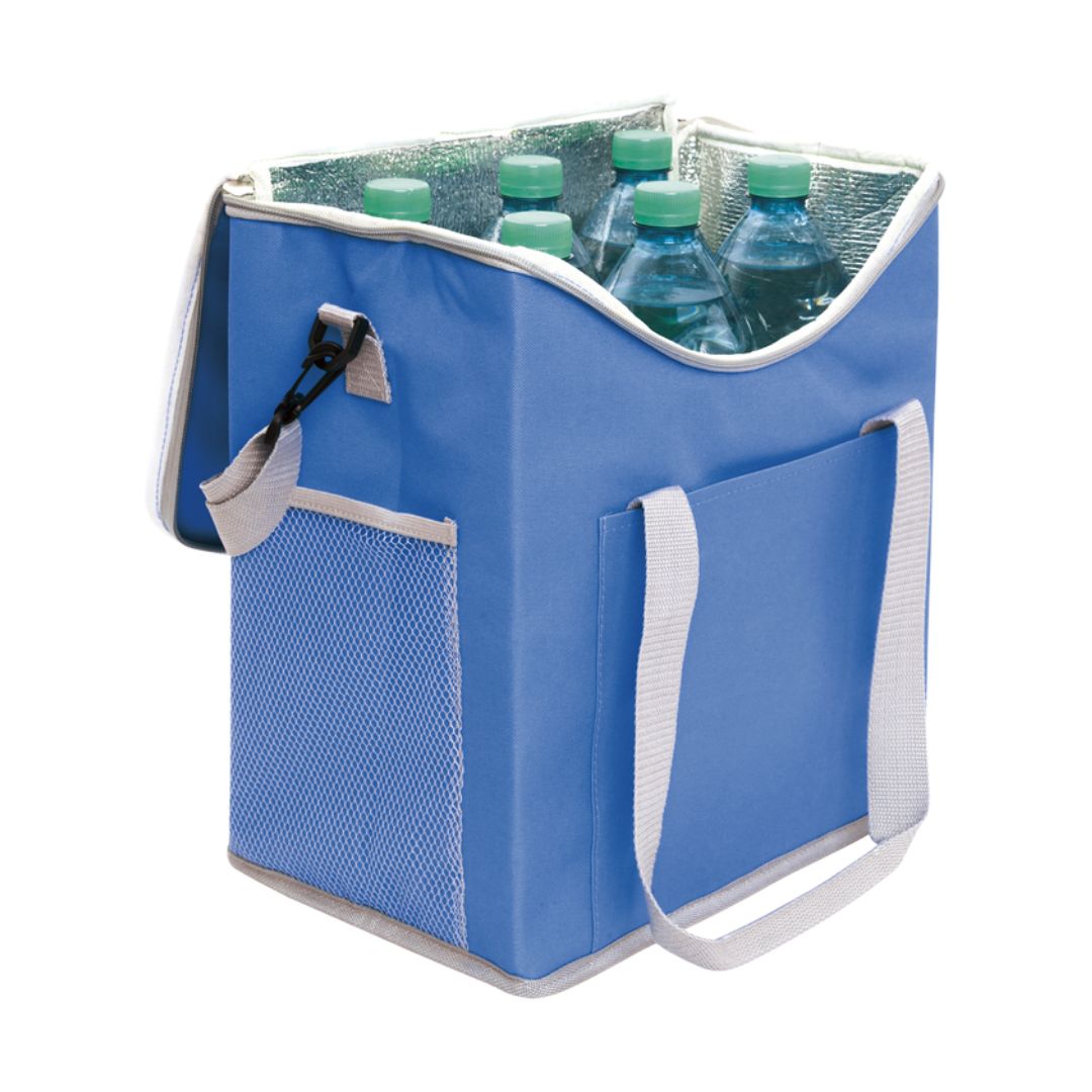 Descripción del producto: 30 x 34 x 19,5 cm. Capacidad 37 litros. Poliéster. 600D Lonchera térmica con recubrimiento interior metalizado. Un bolsillo frontal y dos bolsillos laterales de red. Correa tipo bandolera y dos manijas reforzadas con cierre de velcro. Capacidad hasta 6 botellas de 2,5 litros.