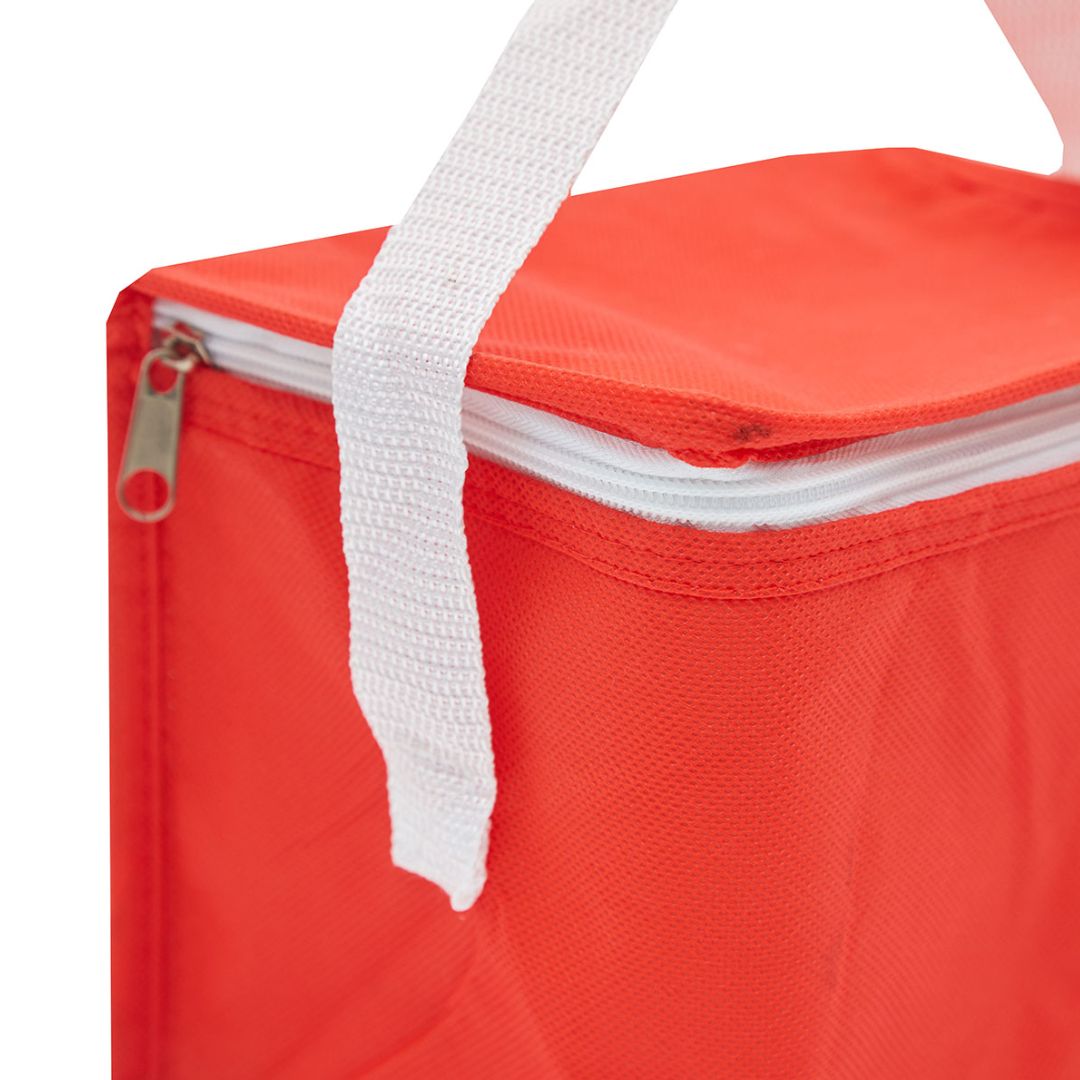 Descripción del producto: Descripción general del producto: Realizado en Friselina (NON WOVEN). Interior en aluminio y PE Foam 2mm. Tiras para sujetar. Compartimiento principal superior. Medidas: 20 x 14 x 15,5 cm. Capacidad 4,5 Lts. Tahg.