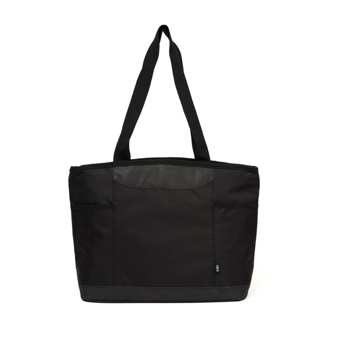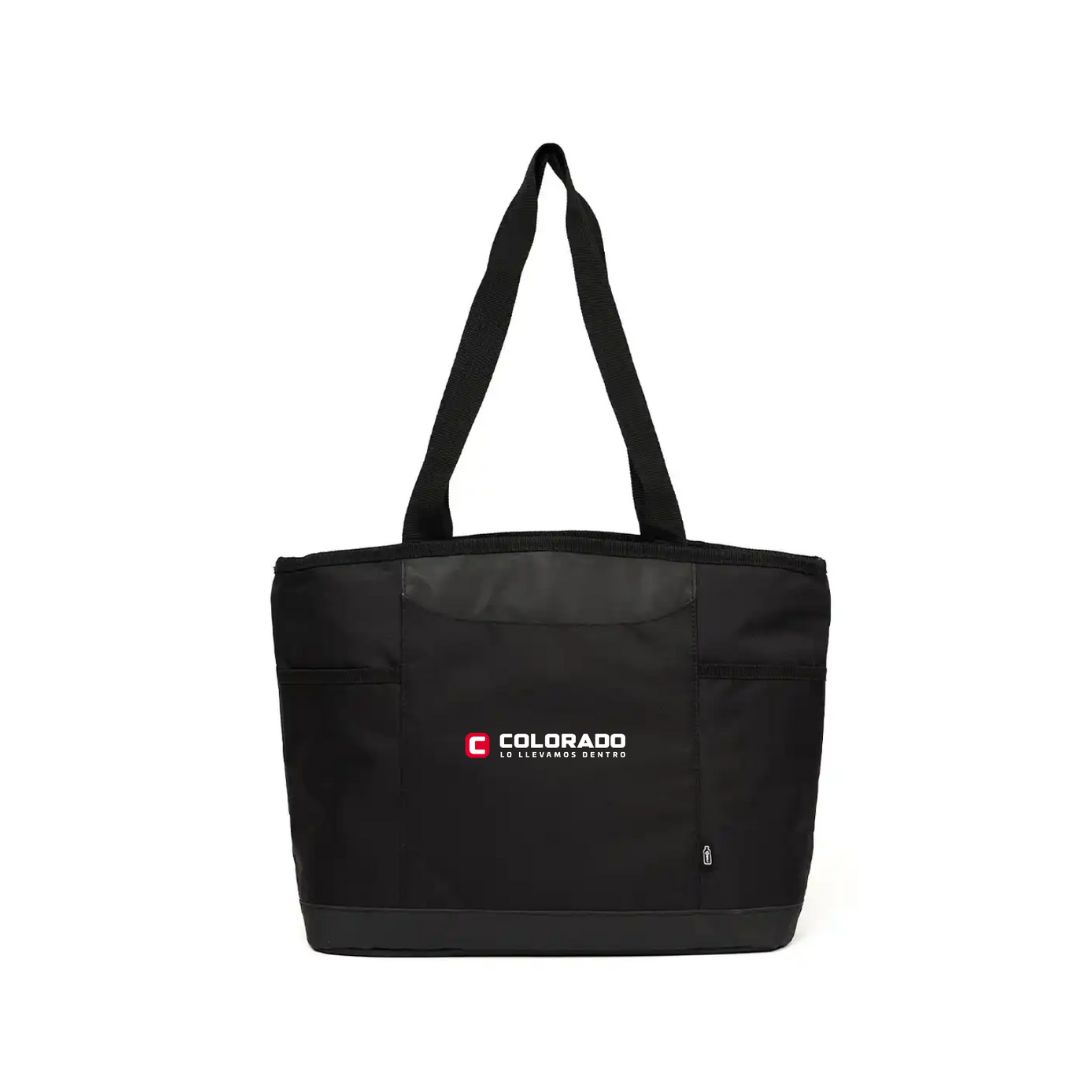 Descripción del producto: Cooler confeccionado en polyester RPET sustentable, fabricado en base a botellas recicladas. Interior térmico. Capacidad: 16 Lts. Medidas:46 x 29 x 15 cm. ReUseMe.