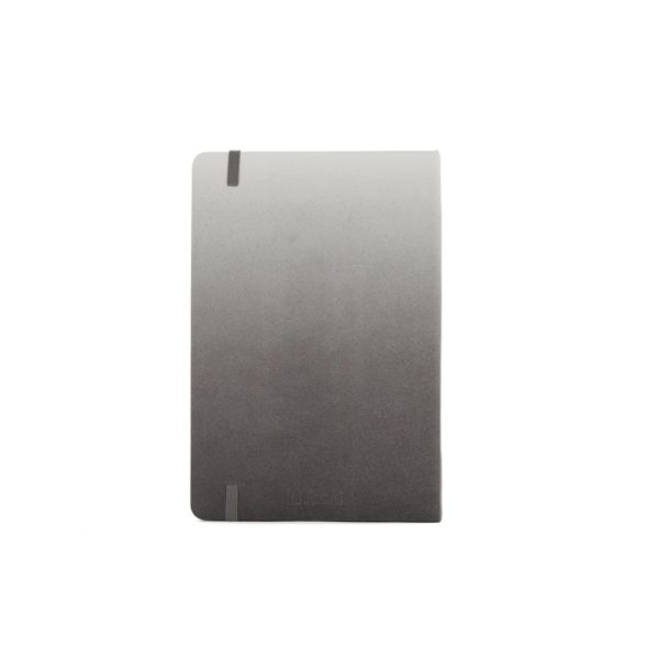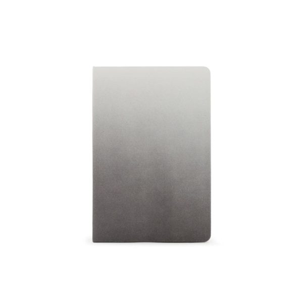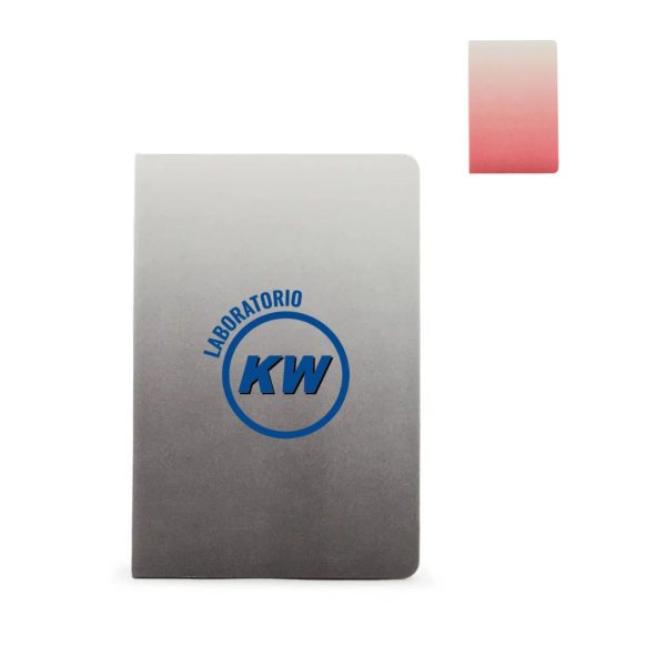 Descripción general del producto: Cuaderno con tapa de efecto de color graduado. Cuenta con 80 hojas rayadas color marfil, de 70 gramos cada una. Posee una cinta separadora de color a tono y elástico para cerrarlo. Tahg.