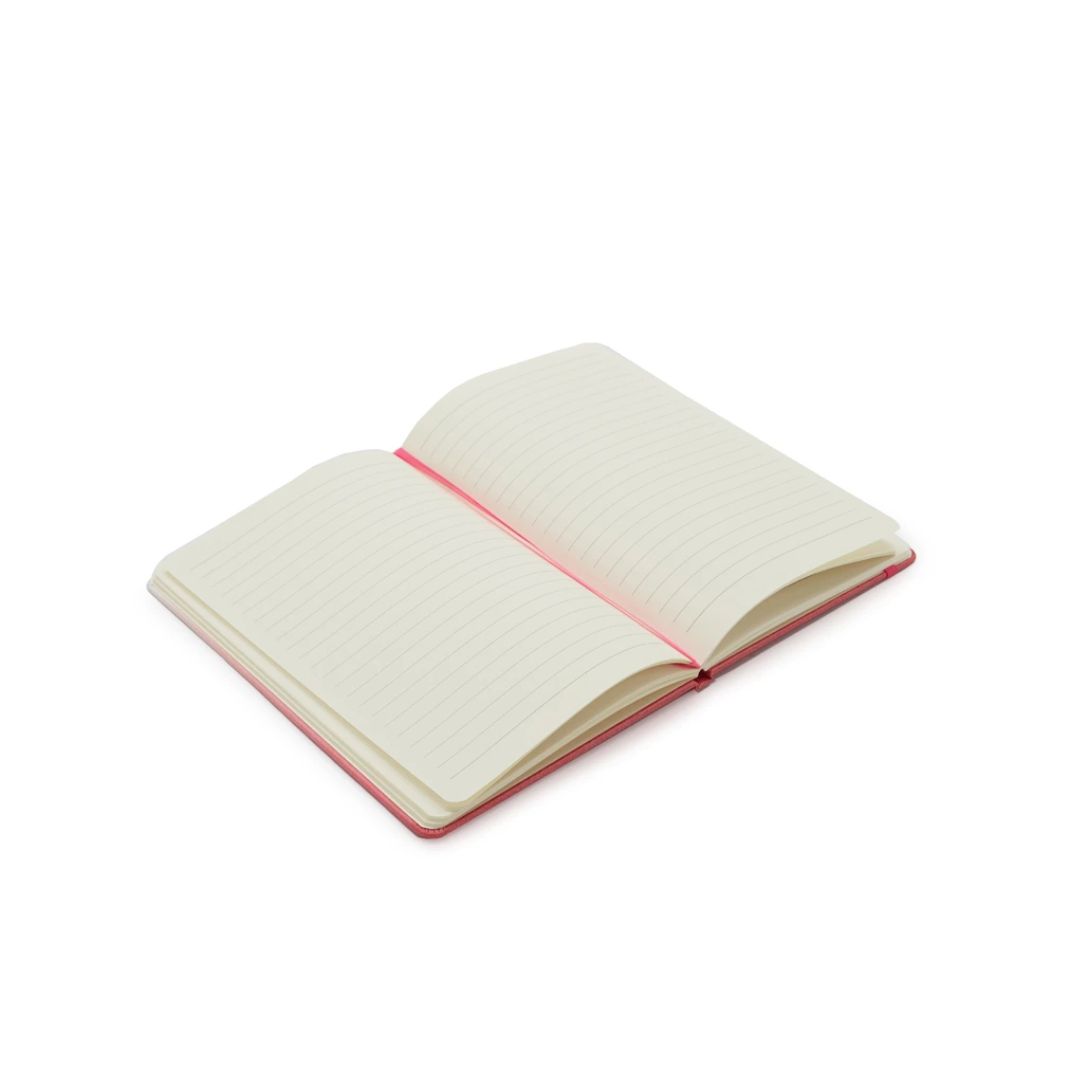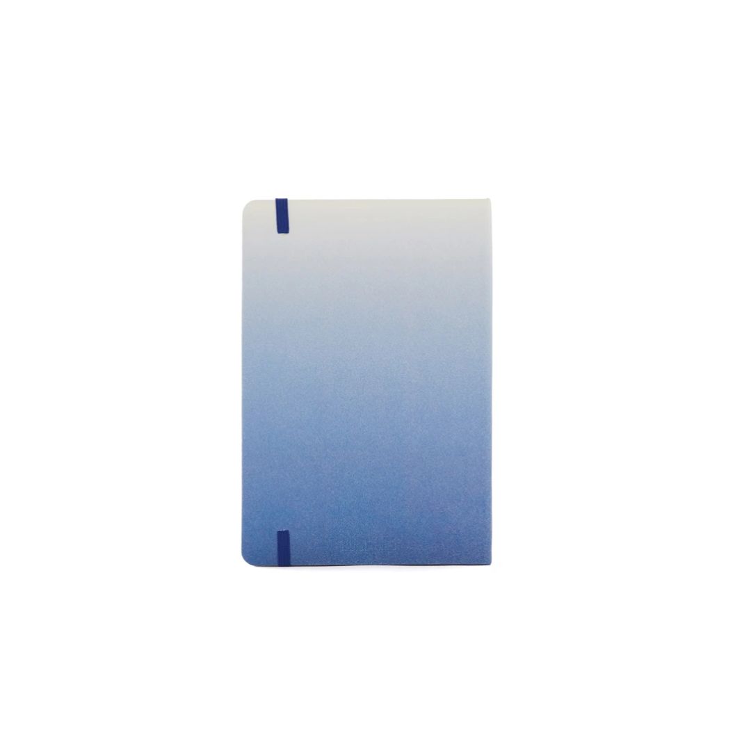 Descripción general del producto: Cuaderno con tapa de efecto de color graduado. Cuenta con 80 hojas rayadas color marfil, de 70 gramos cada una. Posee una cinta separadora de color a tono y elástico para cerrarlo. Tahg.