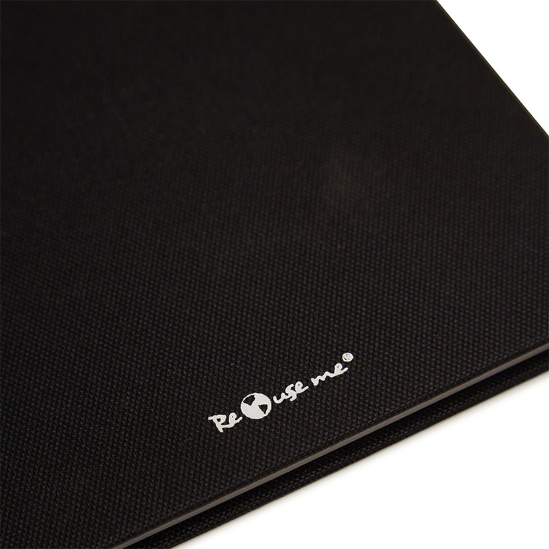 Descripción general del producto: Cuaderno de tapa confeccionado con polyester RPET, hecho con botellas de plástico reciclado. Con 64 hojas lisas de Papel de 120 gramos a base de piedra, de escritura suave, más duradero y resistente que el papel tradicional. Para realizar este papel no se han talado árboles, ya que está confeccionado a partir de Polietileno y polvo de piedras. Cuenta con una cinta marcadora y borde de página de color. 64 hojas lisas de 120g. Medidas : 14,8 x 21cm. ReUseMe.