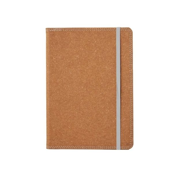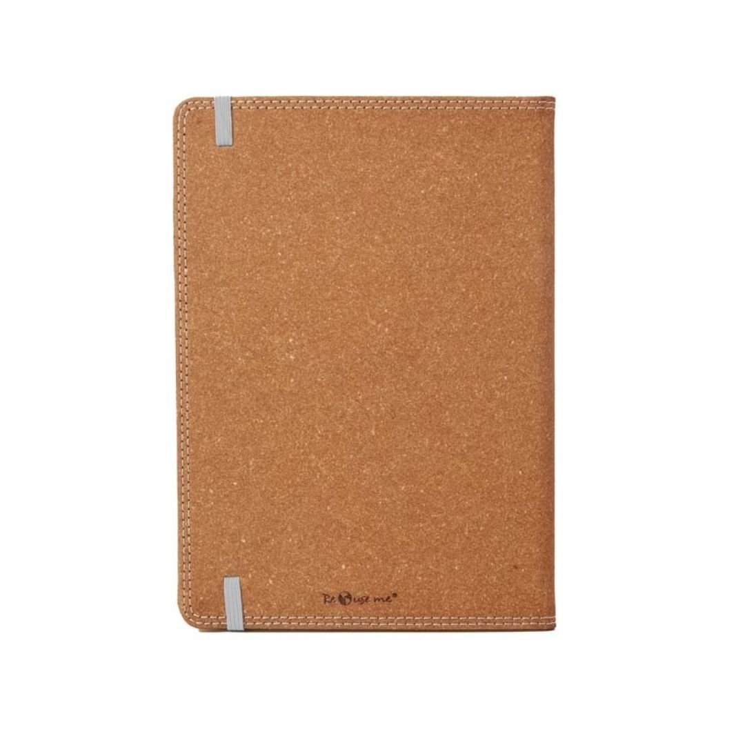 Descripción del producto: Cuaderno de tapa confeccionado en cuero reconstituido, con detalles de costuras en los bordes. Con Hojas lisas. Cuenta con un cierre elástico y una etiqueta tejida.Medidas : 14,8 x 21cm. Se presenta protegido en bolsa. 96 hojas lisas de 70g. ReUseMe.