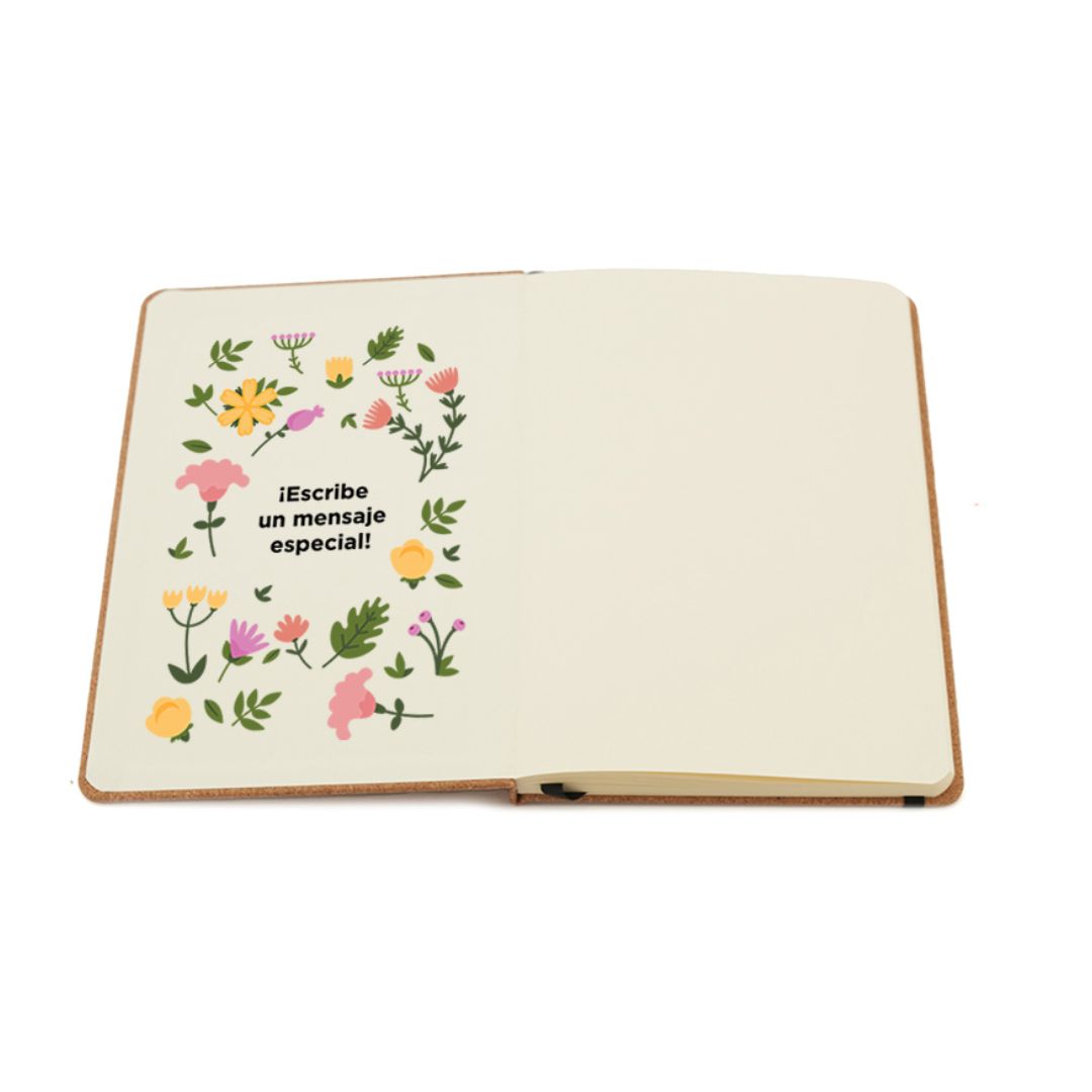 Descripción general del producto: Cuaderno A5 de 80 hojas lisas de 70gr con tapa dura de papel kraft. Cuenta con cierre elástico y marcador de páginas color negro. Encuadernación cosida. ReUseMe.