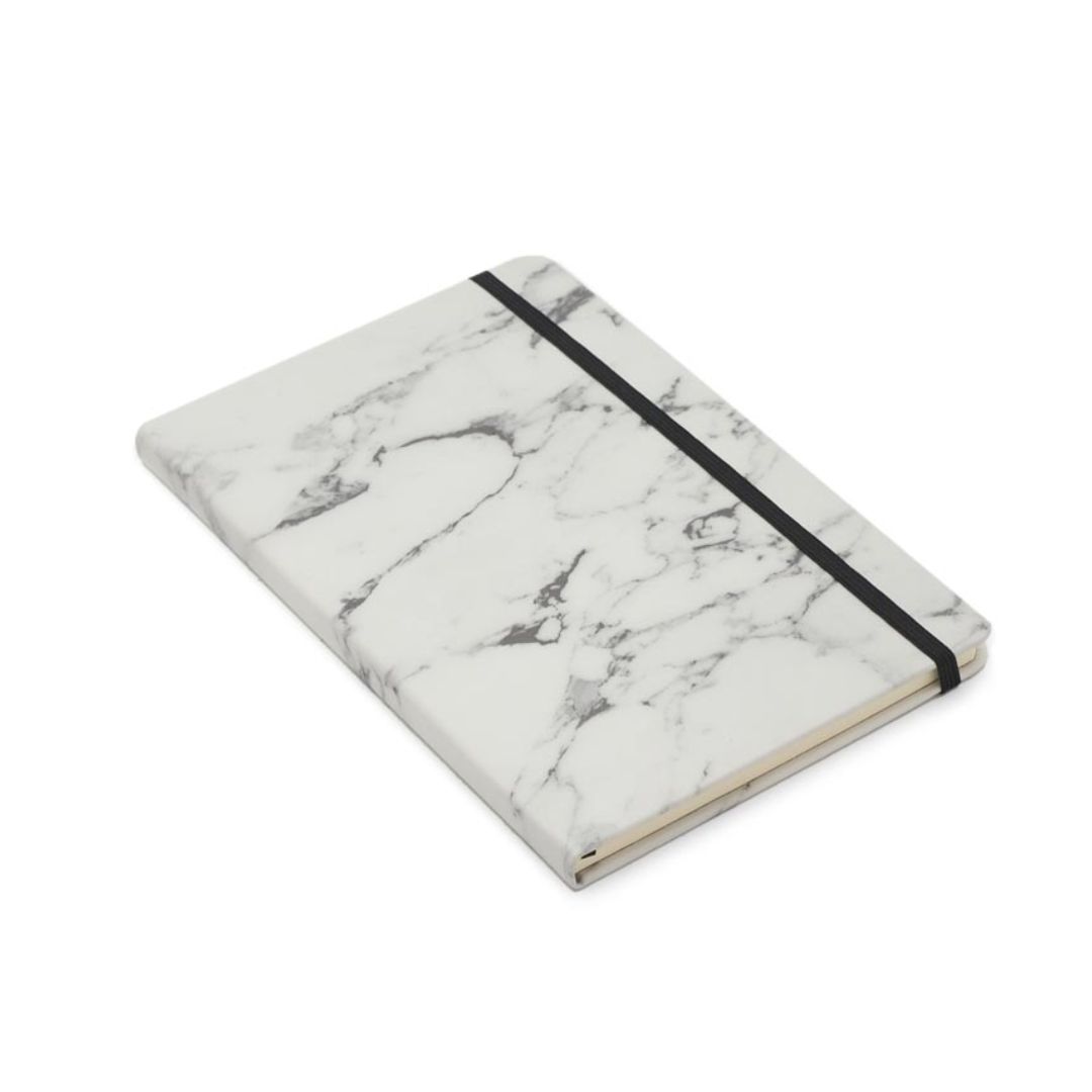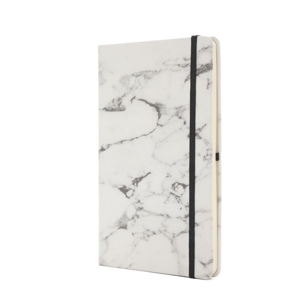 Descripción general del producto: Cuaderno A5 con hojas lisas de 70gr de tapa dura de PU con estampa simil mármol. Cuenta con cierre elástico y marcador de páginas color negro. Encuadernación cosida. Medidas: 21 x 1,4 x 14 cm (Altura x Longitud x Diámetro). The Daily Book.