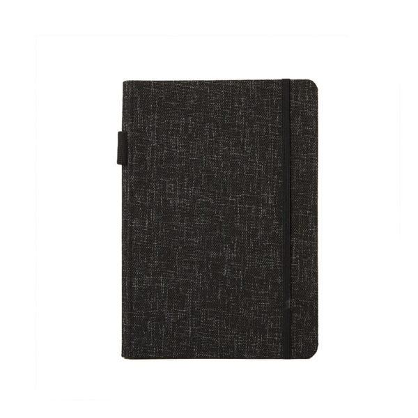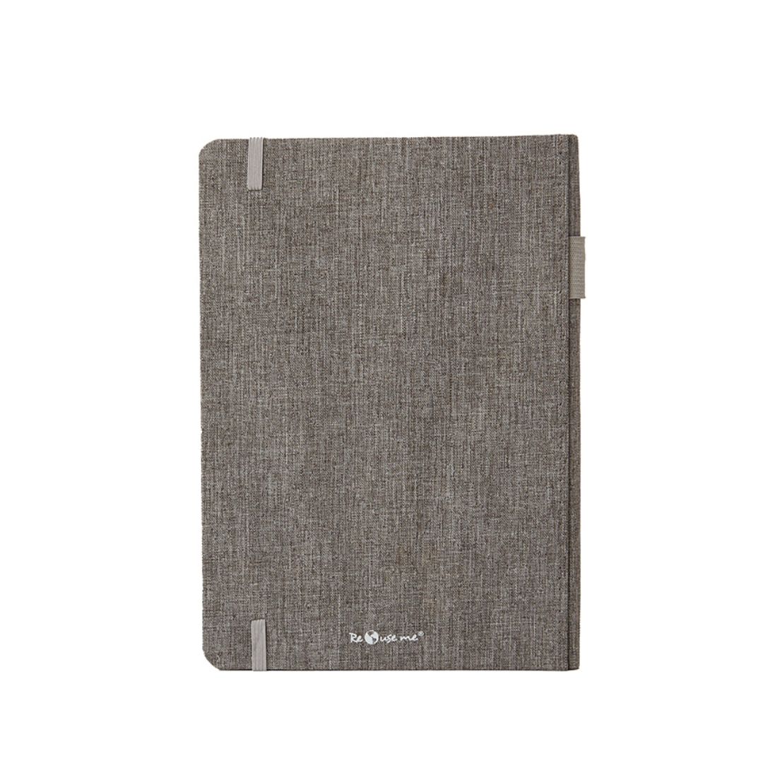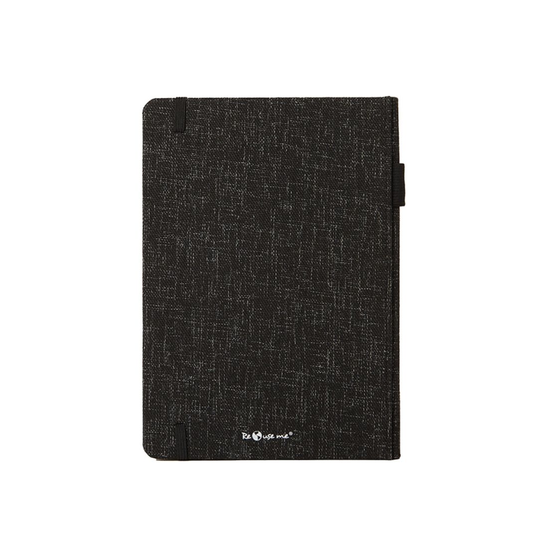 Descripción general del producto: Cuaderno de tapa dura confeccionado con material RPET, hecho con botellas de plástico reciclado. Con 96 hojas lisas de 96 gramos. Papel a base de piedra de escritura suave, más duradero y resistente que el papel tradicional. Para realizar este papel no se han talado árboles, ya que está confeccionado a partir de Polietileno y polvo de piedras. Cuenta con cierre elástico, una cinta marcadora y una etiqueta. 96 hojas de 96 g. Medidas: 14,8 x 21cm. ReUseMe.