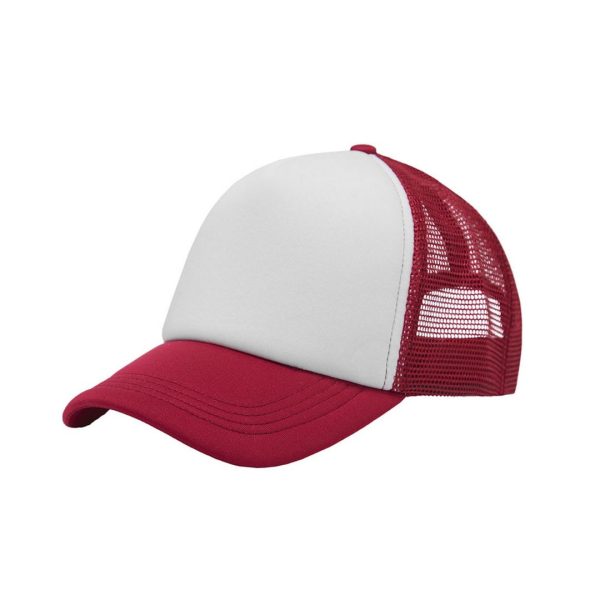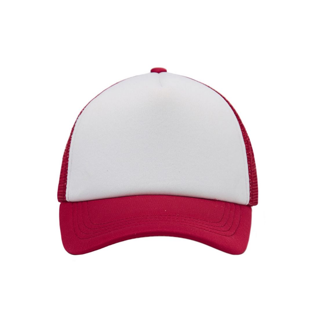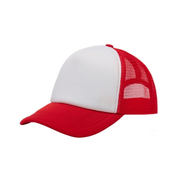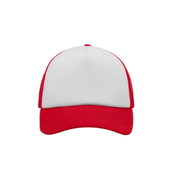 Descripción general del producto: Gorro de 5 paneles en Polyester. Parte trasera con tela red de color. Ajuste con broche plástico. Tahg.