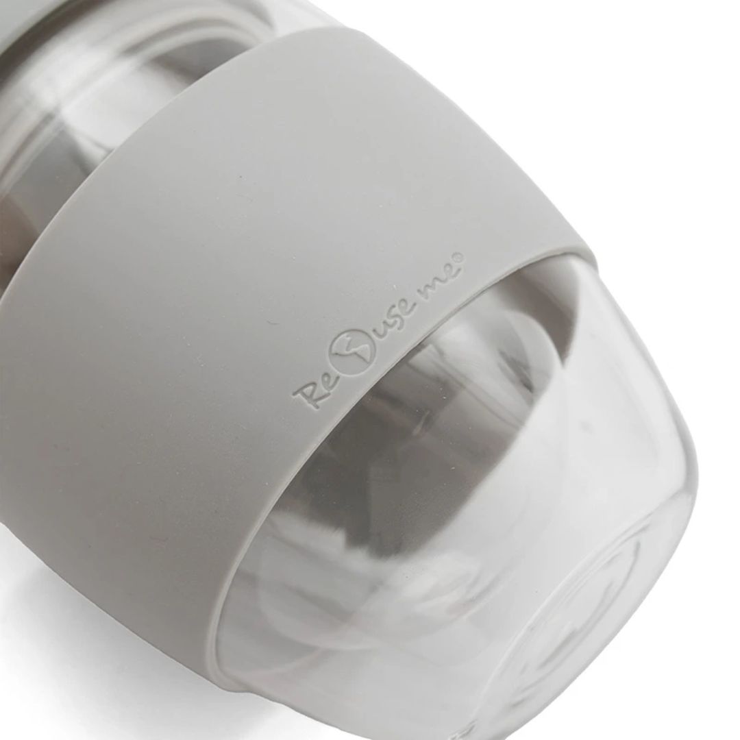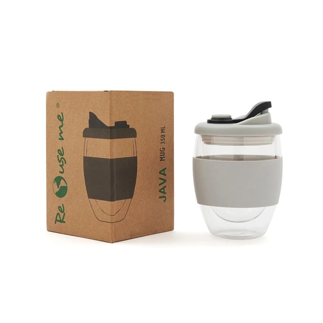 Descripción general del producto: Jarro reutilizable confeccionado en doble pared de vidrio de borosilicato, asegurando que el calor de la bebida no se transmita a las manos. Su tapa con pico y cierre a presión garantiza un uso práctico. Cuenta con una banda de silicona gris antideslizante personalizable. Con una capacidad de 350 ml, es ideal para disfrutar de tus bebidas favoritas en cualquier momento del día. Es apto para lavavajillas. Es apto para microondas. ReUseMe. Incluye Gift Box confeccionada en cartulina Kraft.