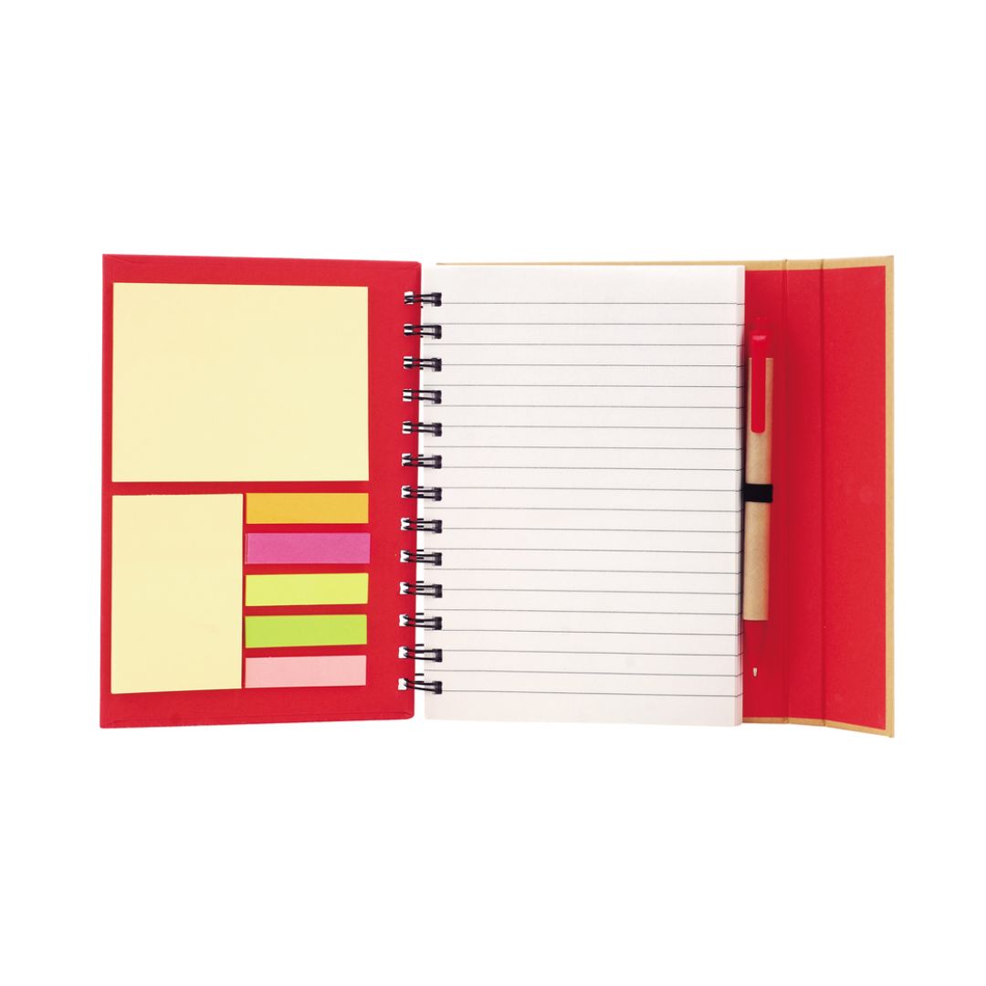 Descripción del producto: 18 x 13.5 x 1 cm. Cuaderno de cartón con espiral. Dos autoadhesivos rectangulares (grande y mediano), cinco autoadhesivos señaladores de diferente color y bolígrafo. 70 hojas rayadas.Cierre imantado.