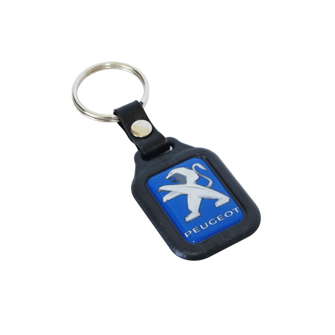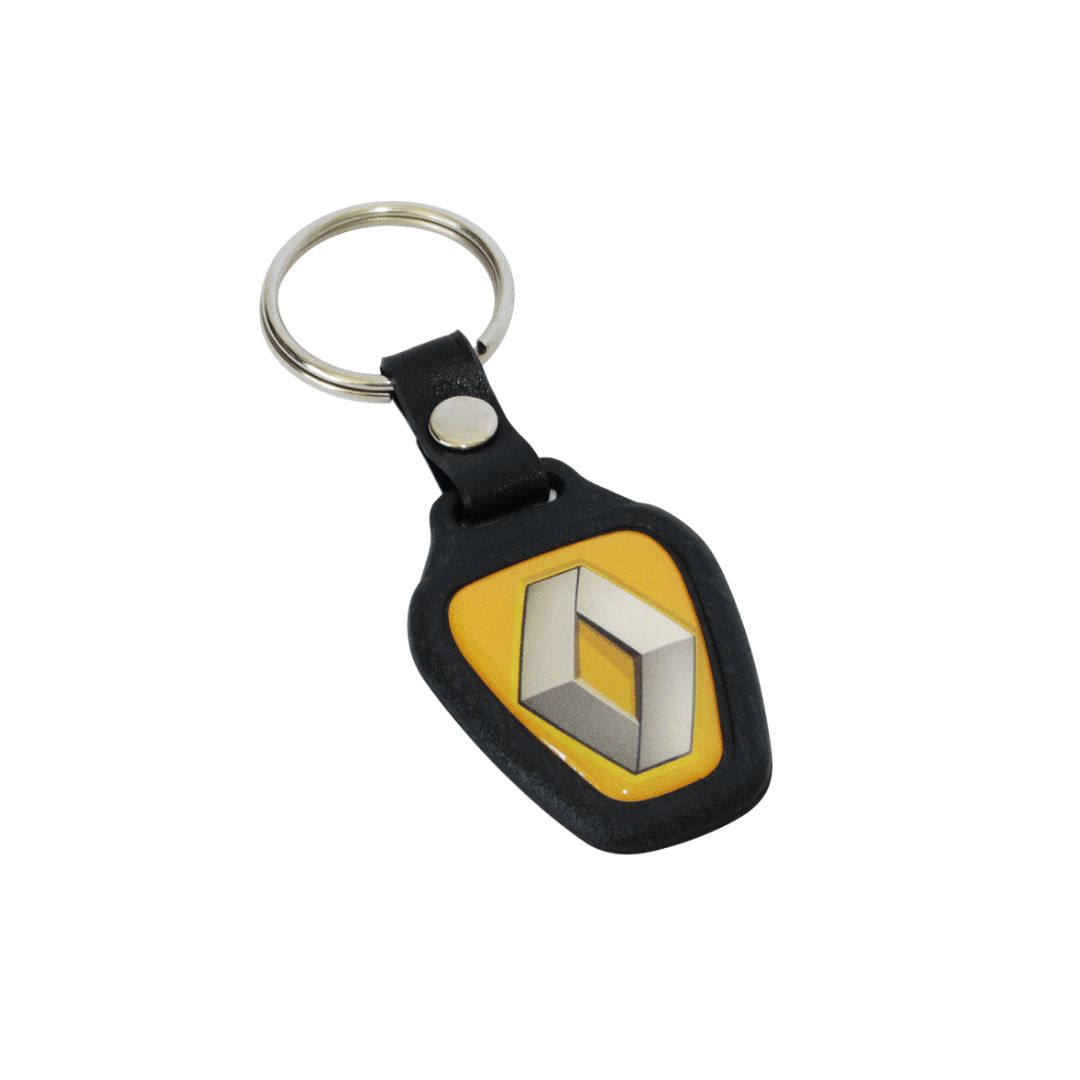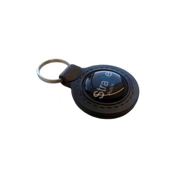 Llaveros de plásticos con dome ambas caras personalizados con el logo de su empresa.
