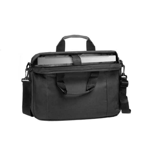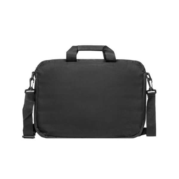 Descripción del producto: Maletín para notebook de hasta 15,6", fabricado en poliéster 600D. Cuenta con un compartimento con separación para la notebook, con interior forrado y acolchado. Incluye bolsillos interiores y un bolsillo en la parte delantera con cierre. Tiene cinta ajustable con refuerzo. Capacidad: 6 litros 40 x 30 x 7cm. Poliéster.