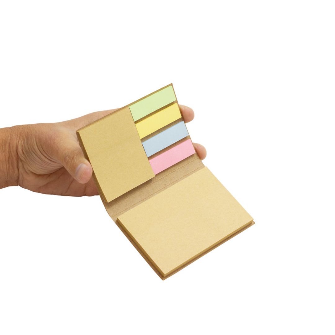 Descripción general del producto: Bloc de notas autoadhesivas.  Cubierta de 300 grms. Incluye: 50 hojas kraft de 9,5 x 6 cm., 25 hojas kraft de 5 x 6 cm y 5 blocs de 25 hojas en colores verde, amarillo, celeste y rosa de 4,5 x 1 cm. Medidas: 10 x 7 cm.  Materiales: Papel.