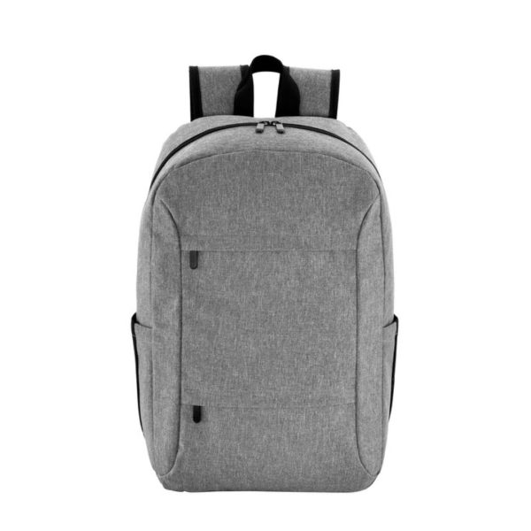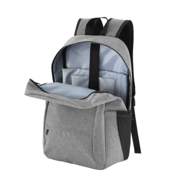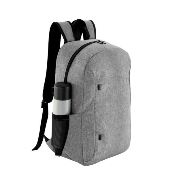 Mochila urbana portanotebook de hasta 16 pulgadas. Compartimento principal con cierre y bolsillo portanotebook y tablet de hasta 11 pulgadas, además bolsillos organizadores de accesorios. Compartimento frontal con 2 bolsillos delanteros. 2 bolsillos laterales, mitad de tela y mitad de malla elástica. Asa color negro. Interior forrado el poliéster gris claro. Correas ajustables y espalda acolchadas. Tira para sujetar la mochila en la manija extensible de un equipaje de mano. Tiradores de cierre metálicos.