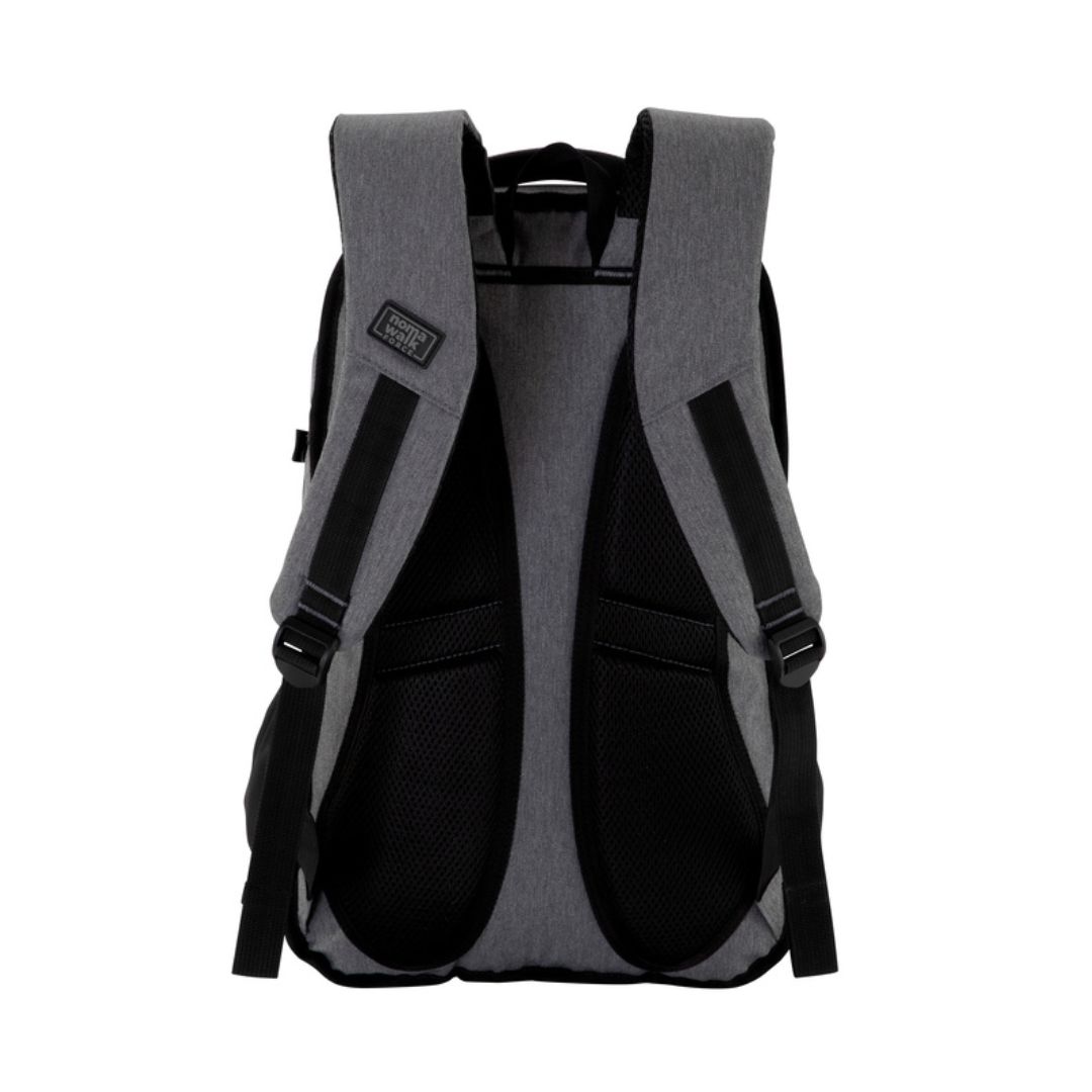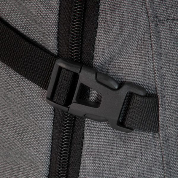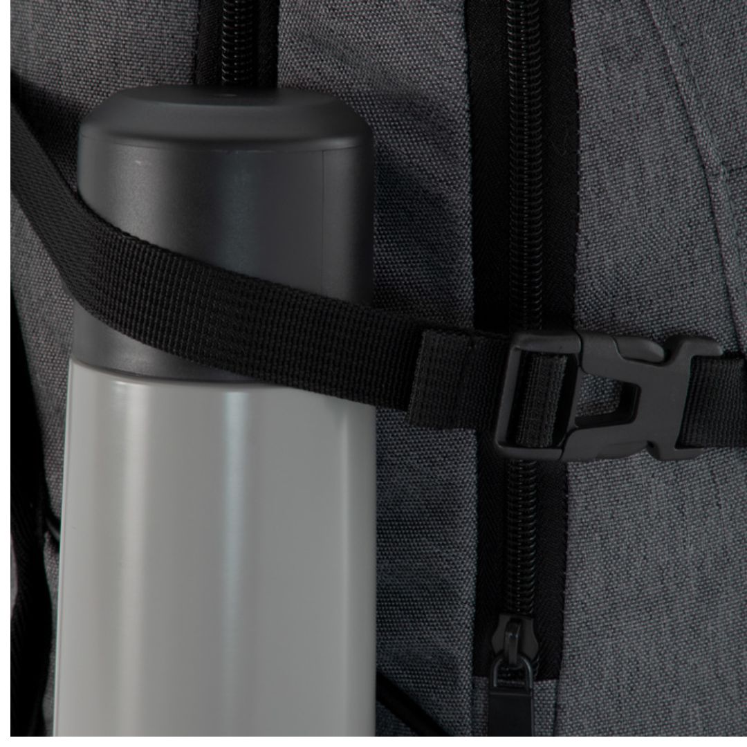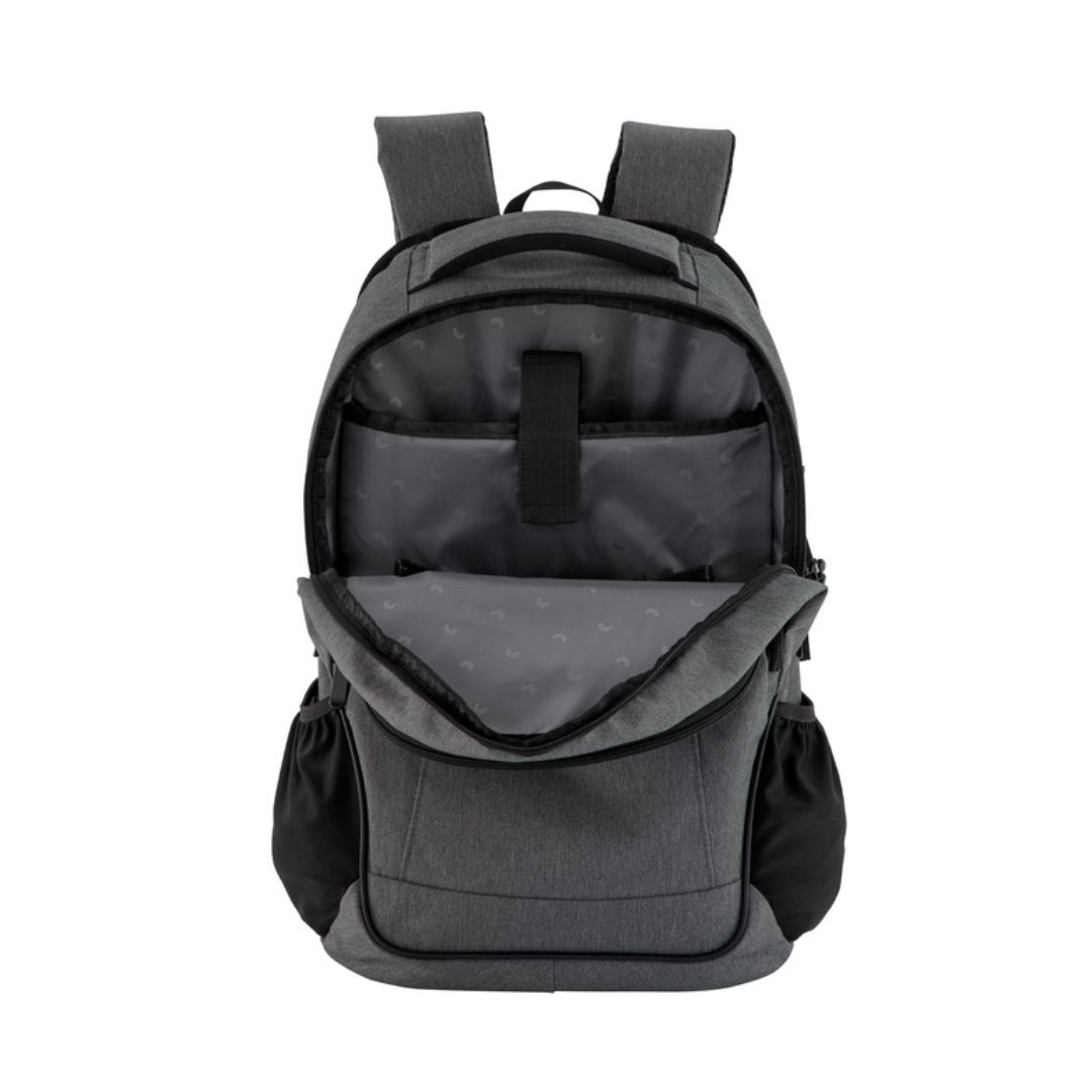 Mochila urbana portanotebook de hasta 16 pulgadas. Compartimento principal con cierre, interior con 2 bolsillos, bolsillo porta notebook acolchado y elástico de seguridad y bolsillo porta tablet de hasta 11 pulgadas. Compartimento frontal con cierre, exterior con cierre horizontal, interior con bolsillos organizadores. 2 bolsillos laterales de tela elastizada color negro. 2 correas de hebillas ajustables al volúmen que se traslade. Asa acolchada y reforzada. Espalda acolchada con red que permite ventilación. Tiradores de cierre metálicos.