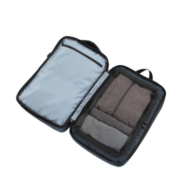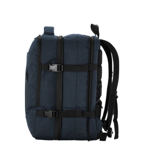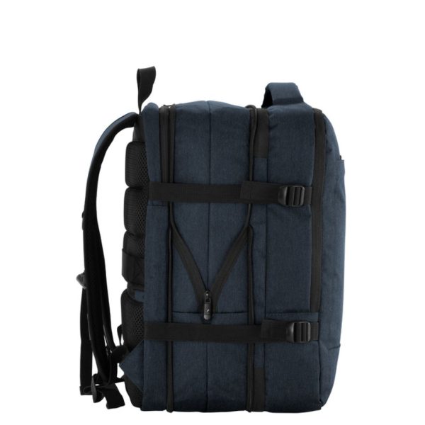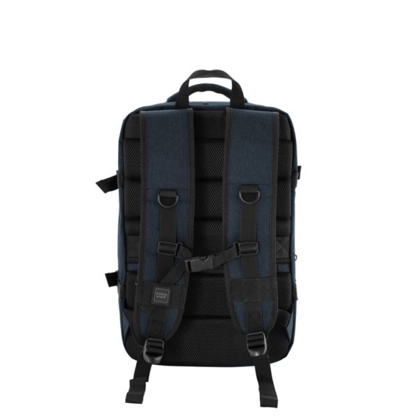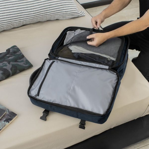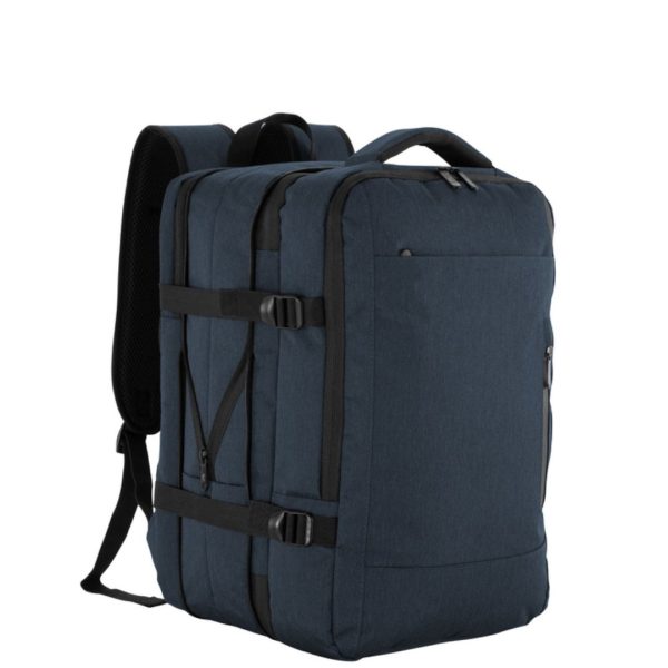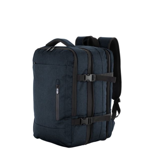 Mochila carry on con 3 compartimentos acolchados. Compartimento principal central expandible con cierre de apertura 360°, interior con cubierta de red con cierre perimetral y bolsillo con cierre horizontal. Compartimento posterior con cierre, bolsillo portanotebook de hasta 16 pulgadas con tira de seguridad con cierre de velcro y bolsillo plano . Compartimento frontal, exterior con bolsillo con cierre horizontal y bolsillo vertical con cierre impermeable, interior con bolsillos organizadores y un bolsillo de red. Asa acolchada y reforzada para mejor traslado. 2 correas de hebillas ajustables al volumen que se traslade. Espalda acolchada con red que permite ventilación. Tira para sujetar la mochila en la manija extensible de un equipaje de mano y bolsillo de seguridad con cierre. Correas acolchadas. Tiradores de cierre metálicos.