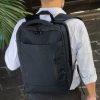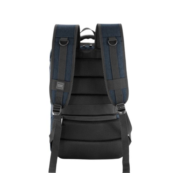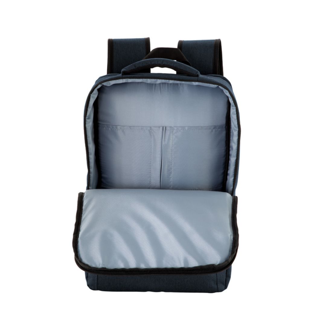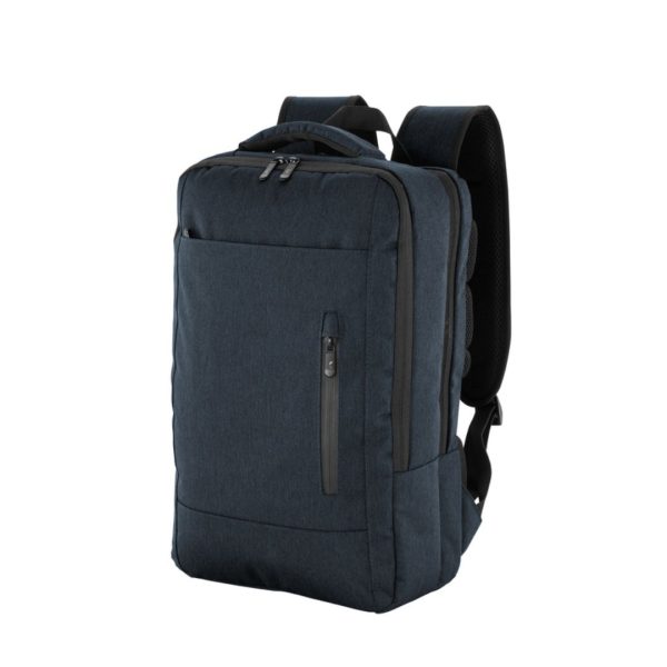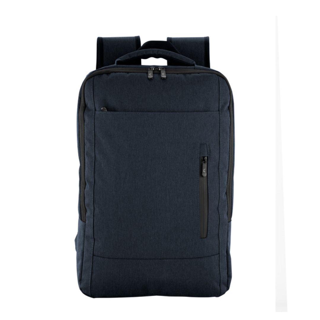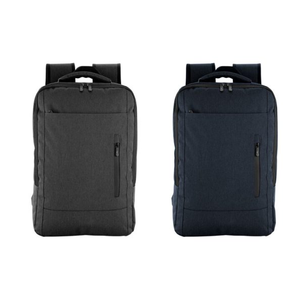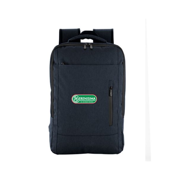 Mochila portanotebook de hasta 16 pulgadas. Cuenta con dos compartimentos: Compartimento posterior con cierre, bolsillo portanotebook de hasta 16 pulgadas con tira de seguridad con cierre de velcro y bolsillo plano con cierre . Compartimento frontal, exterior con bolsillo con cierre horizontal y bolsillo vertical con cierre impermeable, interior con bolsillos organizadores y un bolsillo de red. Asa acolchada y reforzada para mejor traslado. Espalda acolchada con red que permite ventilación. Tira para sujetar la mochila en la manija extensible de un equipaje de mano y bolsillo de seguridad con cierre. Correas acolchadas. Tiradores de cierre metálicos.