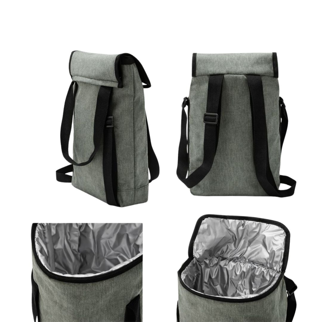 Descripción del producto: Portatermo mochila con división, tapa con abrojo, base rectangular súper cómoda. Fabricada en tela cordura, ribeteada con gris en su tapa. Su interior está compuesto por aislante térmico Nexpol.