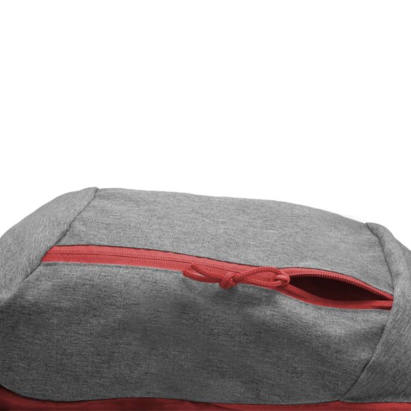 23 x 39,5 x 10 cm. Capacidad 9 litros. Poliéster 300D + Snow: resistente al agua. Mochila con un compartimento principal, bolsillo frontal con cierre, detalle de color en cierre y tiradores. Espalda acolchada del mismo color que el cierre.