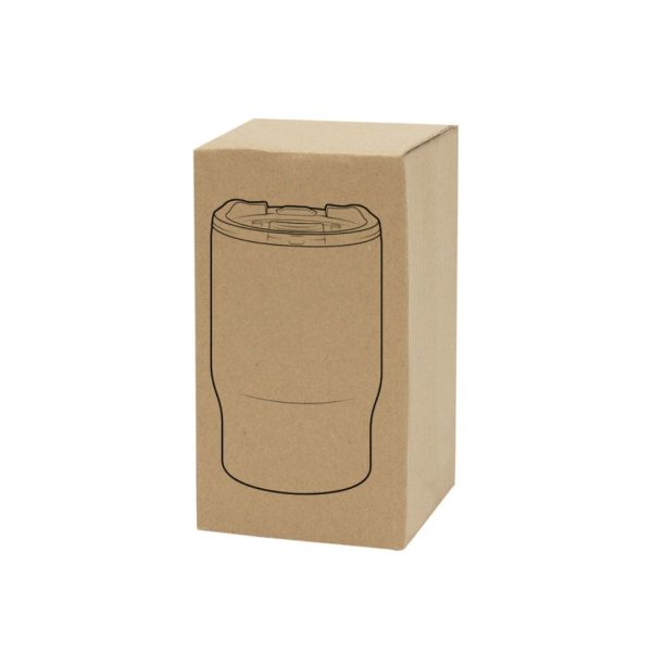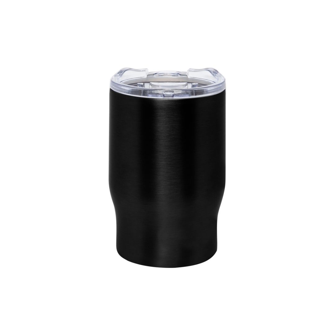 Descripción del producto: 8,5 x 13,3 cm. Capacidad 350 ml. Acero inoxidable. Mug doble pared, sin tratamiento de vacío. Interior de acero 304 y exterior de acero 201. Tapa plástica transparente a presión con anillo de silicona. Mantienen las bebidas frías y calientes por más tiempo. No utilizar con bebidas gaseosas. Presentación en caja de regalo.