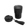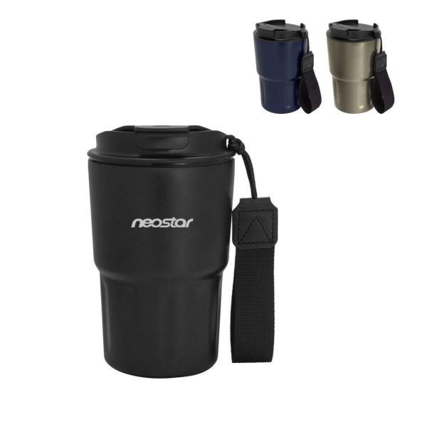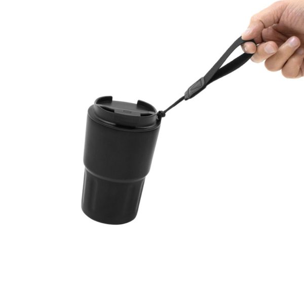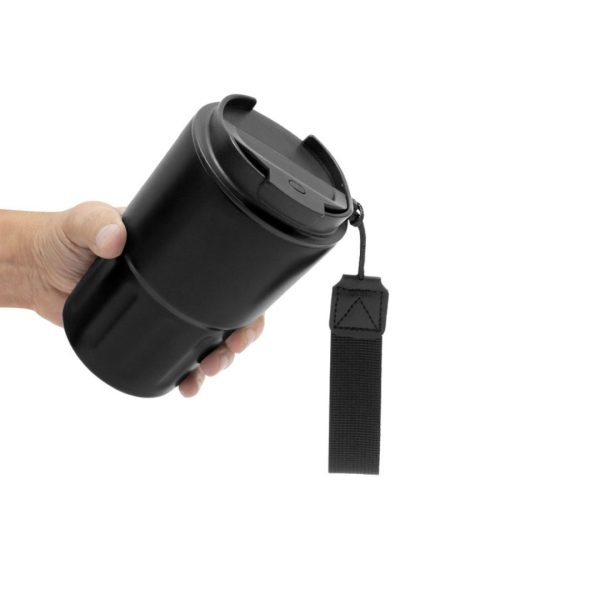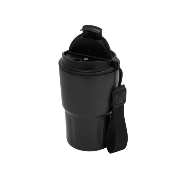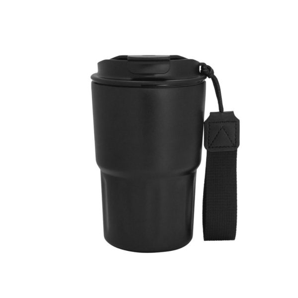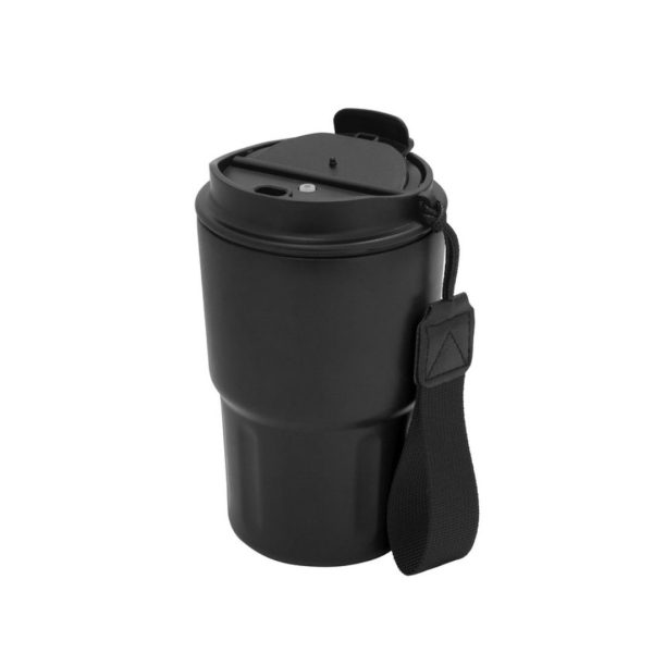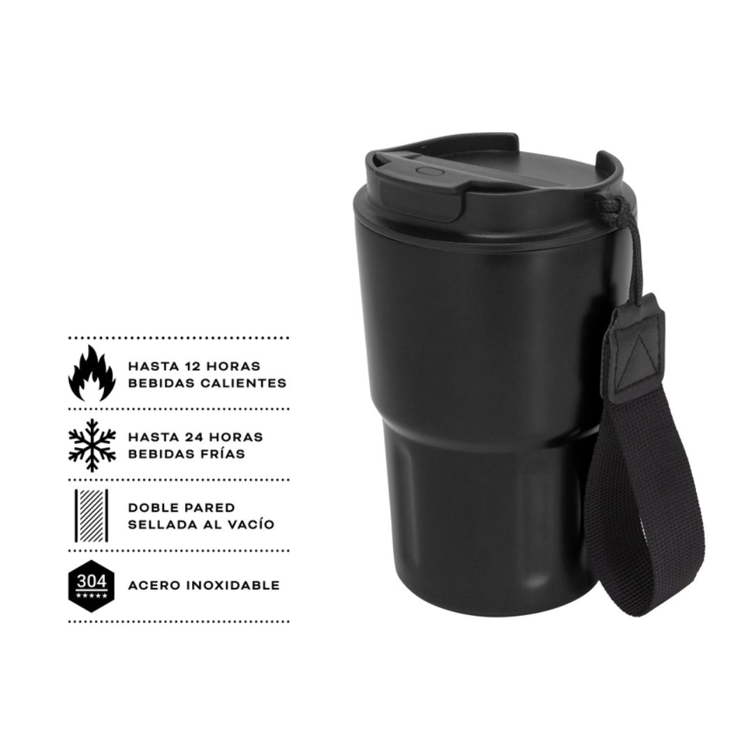 Descripción del producto: Mug doble pared, sellado al vacío. Mug con aislamiento térmico. Tecnología vacuum. Interior en acero 304 y exterior en acero 201. Tapa de polipropileno con anillo de silicona y correa de poliéster en color negro. Pintura acabado mate. Mantiene por más de 12 hs la temperatura de las bebidas calientes y 24 hs de las bebidas frías.