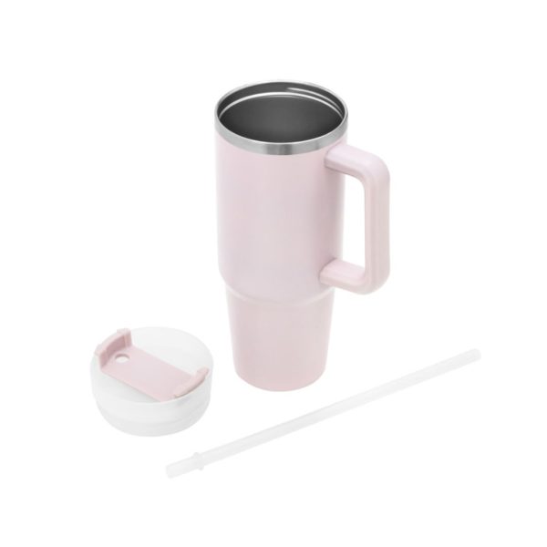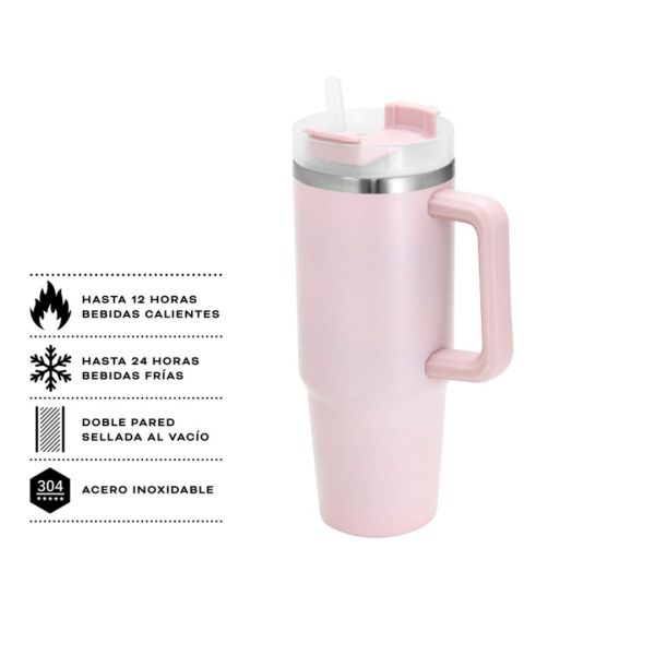 Descripción del producto: Mug doble pared, sellado al vacío con sorbete. Tecnología Vacuum. Interior en acero 304 y exterior en acero 201. Tapa plástica transparente a rosca con anillo de silicona. Cierre giratorio porta sorbete. Sorbete plástico translucido. Pintura exterior con acabado mate. Mantiene hasta 12 hs la temperatura de las bebidas calientes y 24 hs de las bebidas frías.